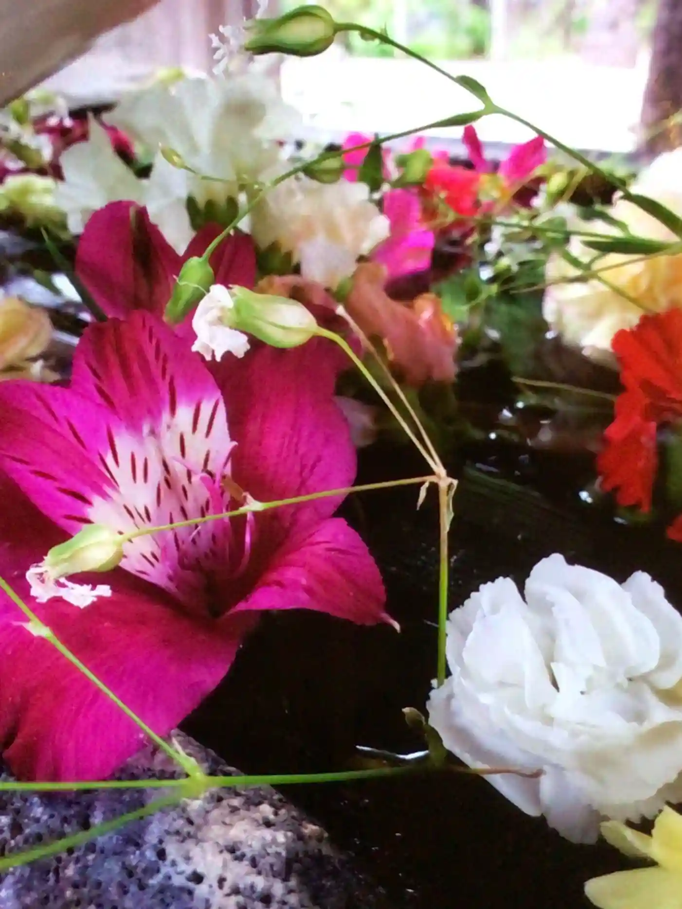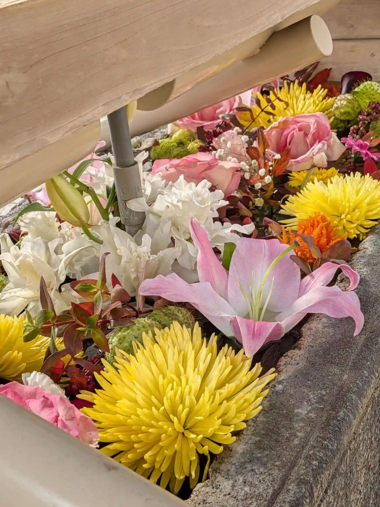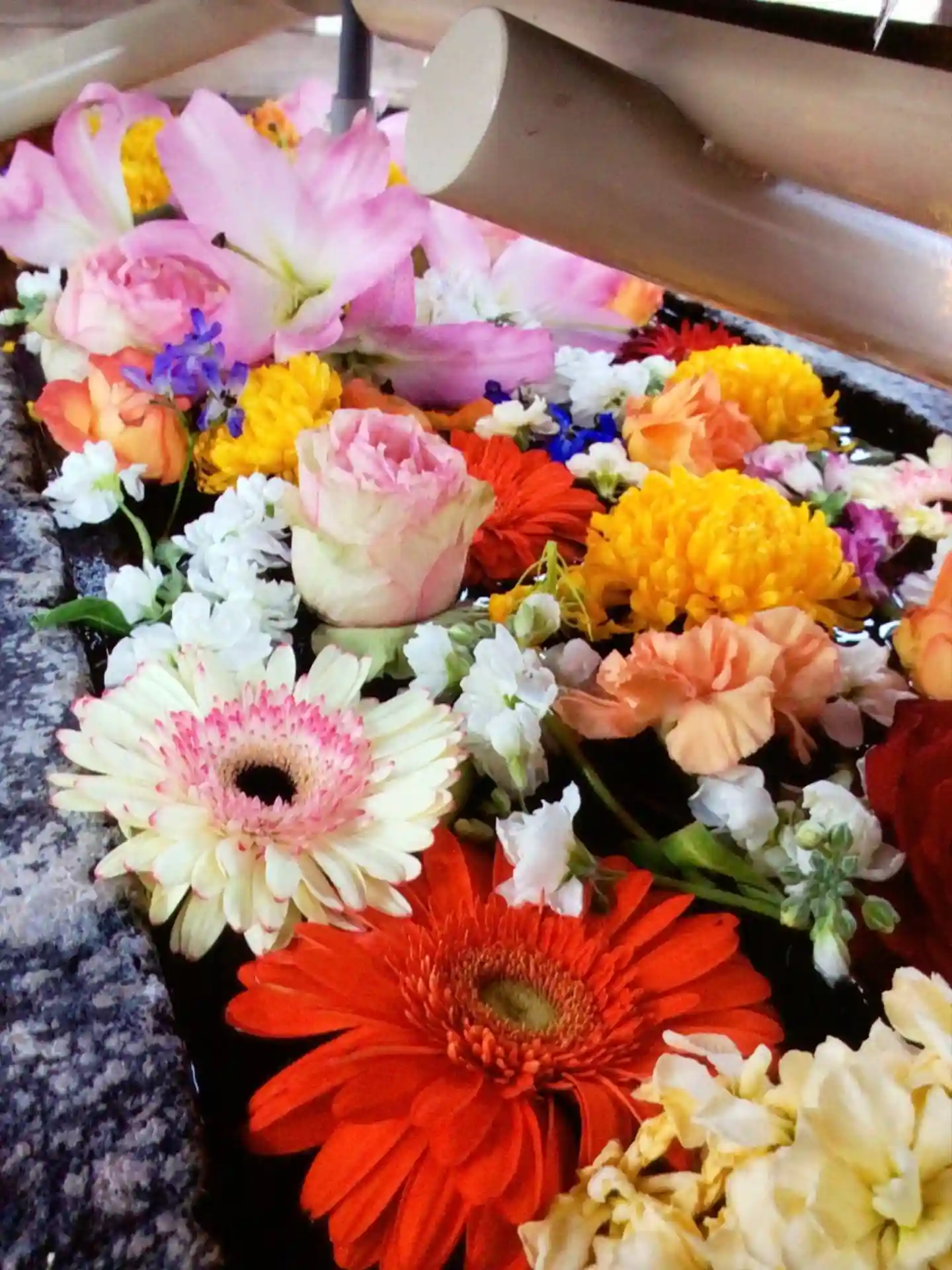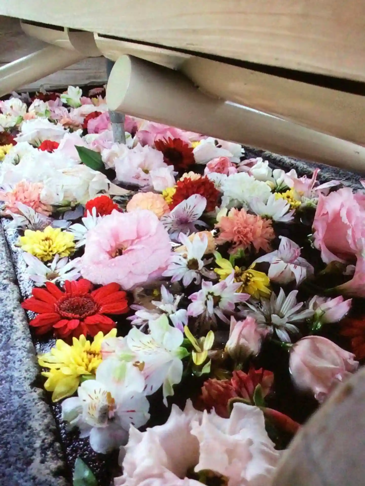 大晦日に入れられたお正月花手水を、なんとか見たくて、1/6になってしまったのでもう駄目かな…と思い…