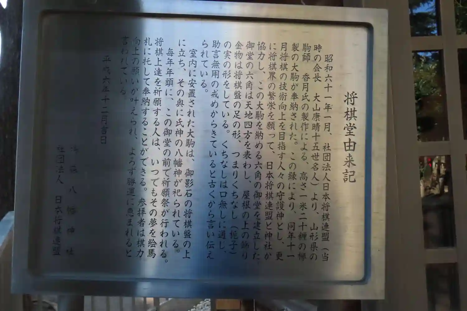 高さ1.2メートルの「王将」の大駒が奉納されています。