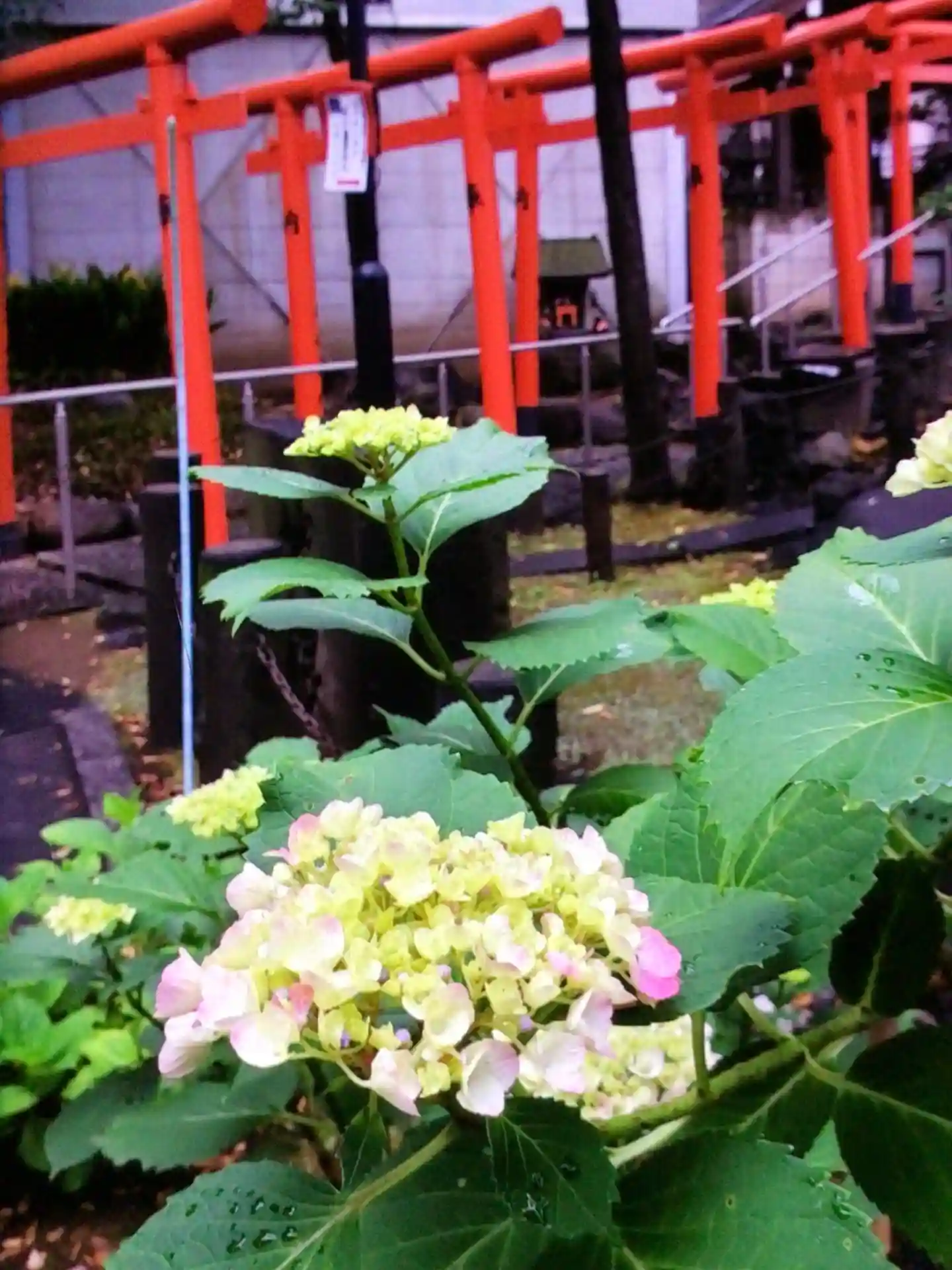花手水が入れ替えられたと聞いて雨の中ウォーキングがてら鳩森さんに行き…