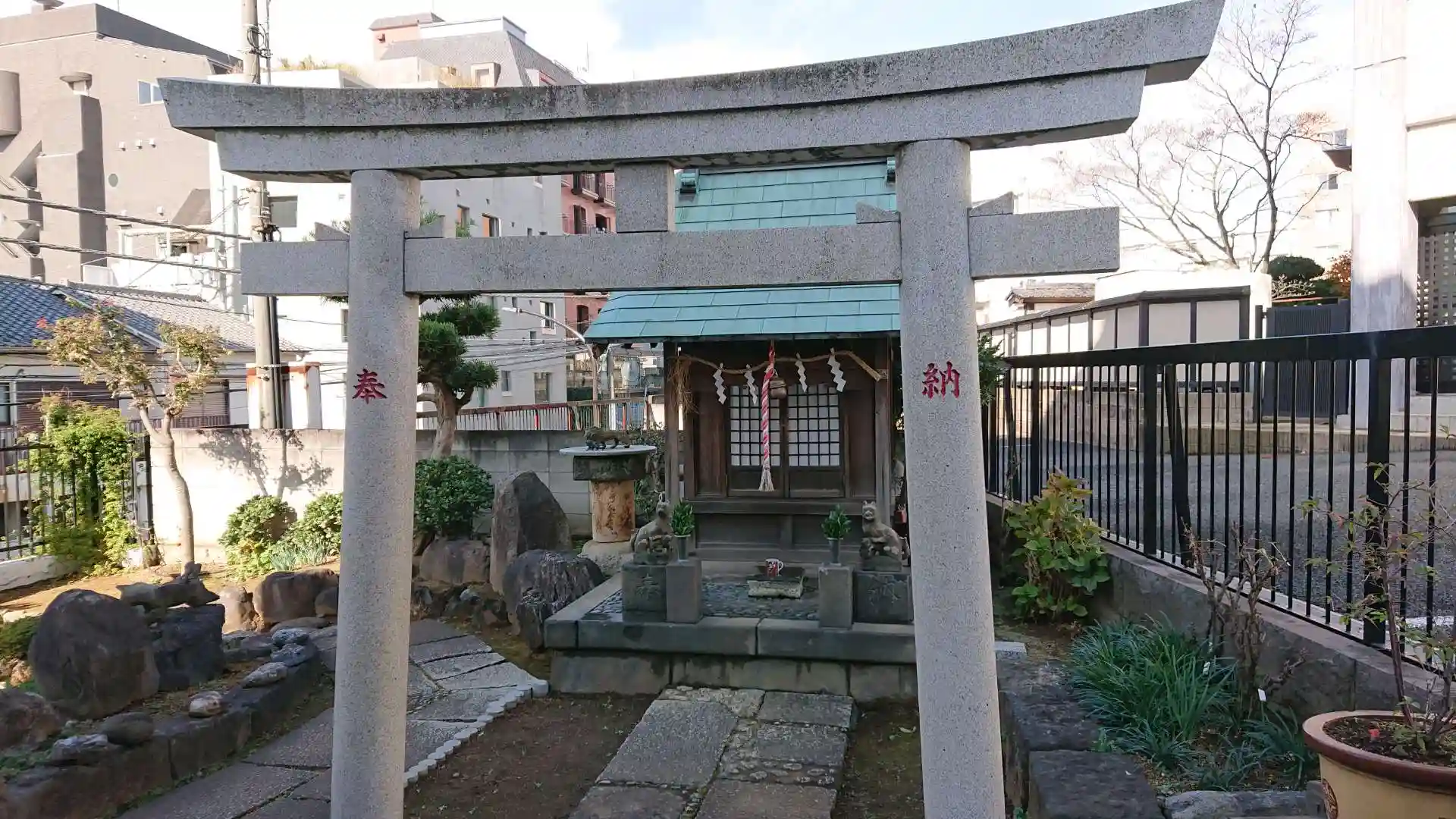 鳩森八幡神社から東郷神社へ徒歩で向かう途中に見かけたので参拝しました。本当に小さい神社です。鳥居をくぐると岩の中に祠があり、更に石段を登ると小さい社が有りました。現在はない大榎の樹が女性の性器に似ていたことから、江戸時代内藤新宿の遊女が参拝したそうです。