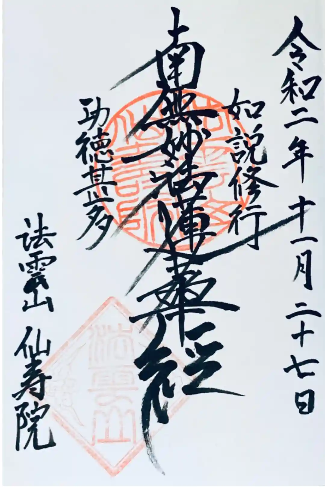 直書きの御首題を拝受。