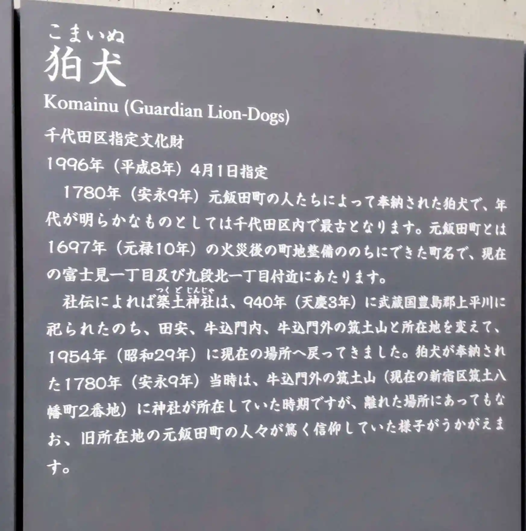 平成8年千代田区有形民俗文化財。