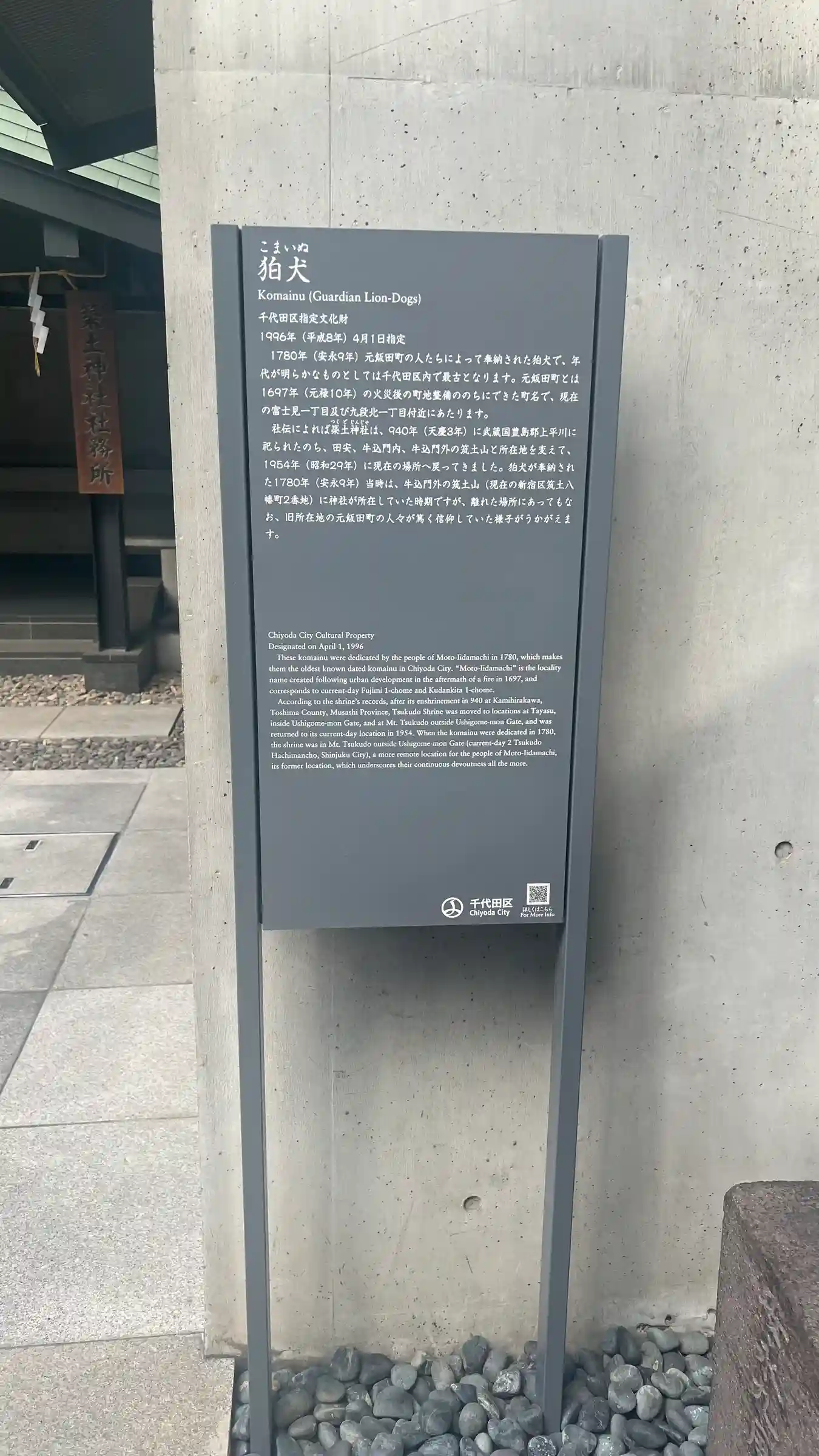 東京大空襲で、社寶などはすべて焼けてしまいましたが、狛犬は安永九年(1780)に奉納された古いものが焼け残ったそうで、千代田区の文化財に指定されています。
