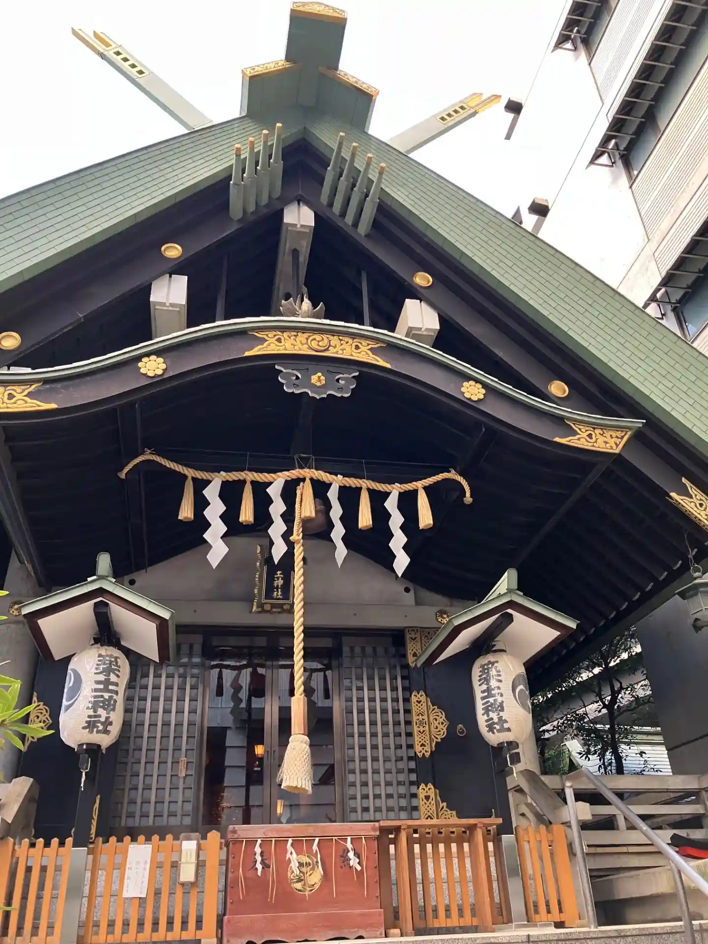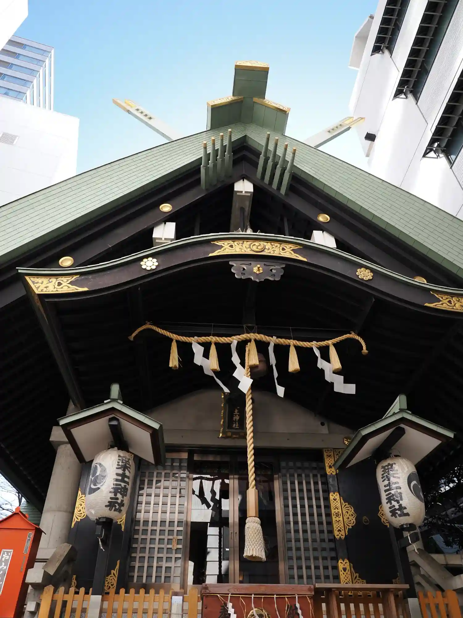 鳥居の上ビルの中央上部に神剣がありました‼️