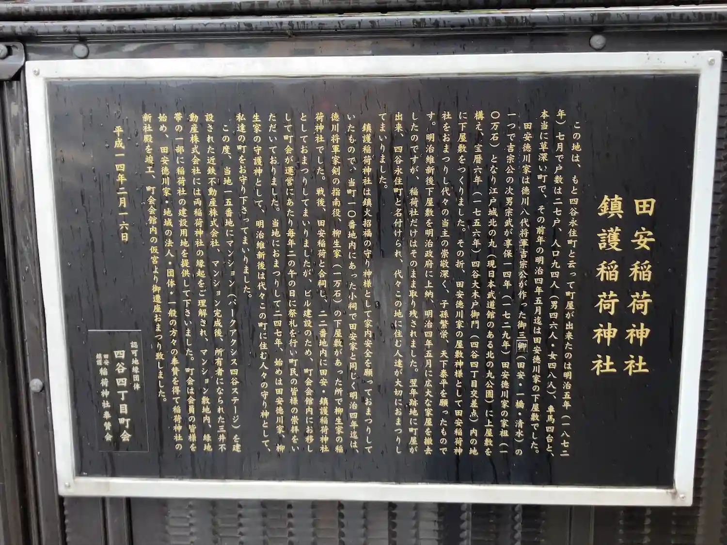 東京都新宿区に鎮座する、田安鎮護稲荷神社を参拝。住宅街にひっそりと建っている。