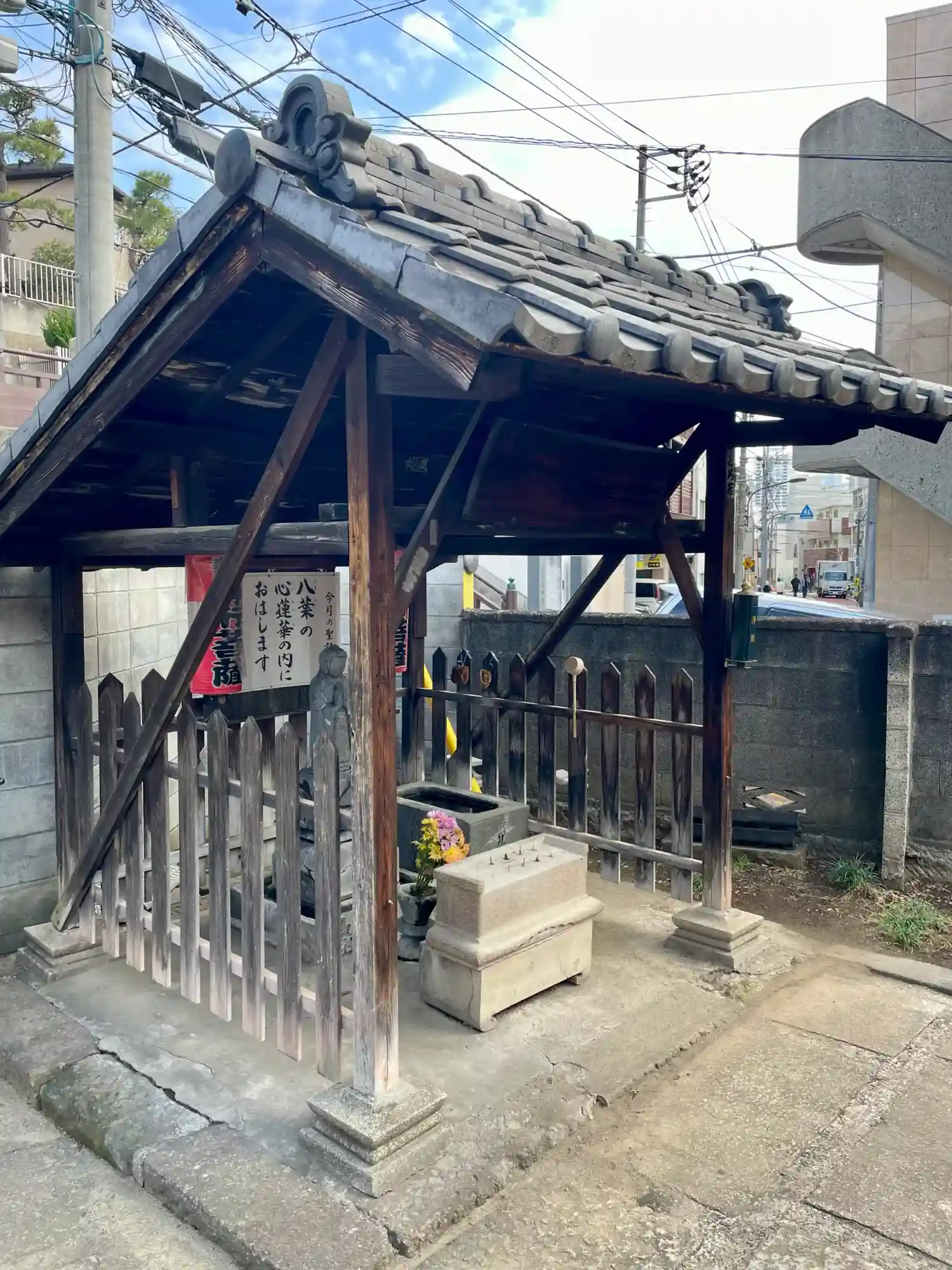 日宗寺は、当初麹町9丁目の清水谷に弘法山浄蓮寺として創建され、江戸城の外濠拡張工事のために寛永11年に現在地へ移転しました。山号「高見山」、寺号「日宗寺」と改称されたのは、開基である藤堂高次の妻、高見院殿心月日宗大姉の法号に由来しています。