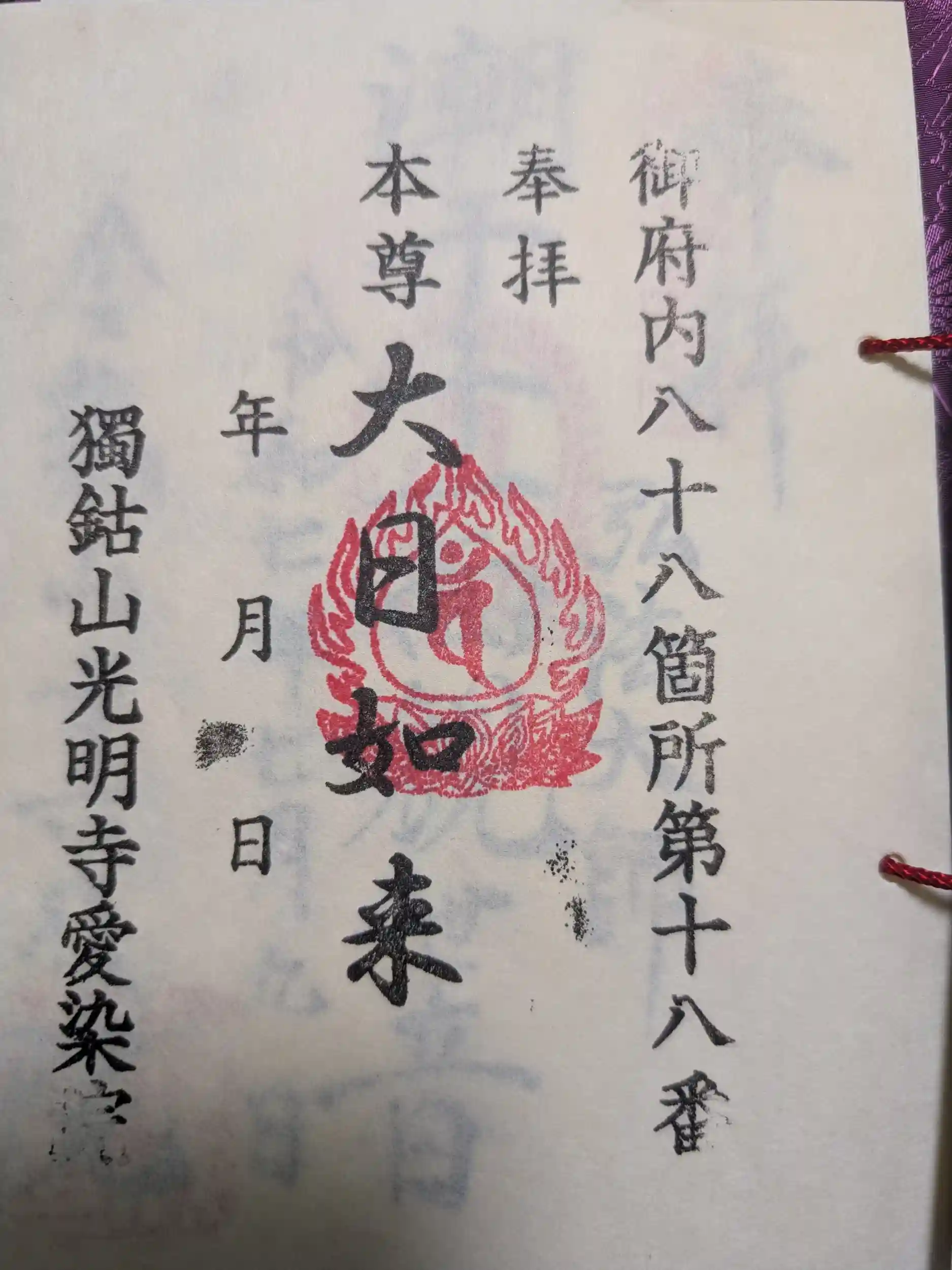 御府内八十八カ所霊場 16カ所目は第18番の愛染院さん。納経した場合は手書きの御朱印をいただけるようですが、納経しない場合は本堂前にあるスタンプを自分で押印する形です。
