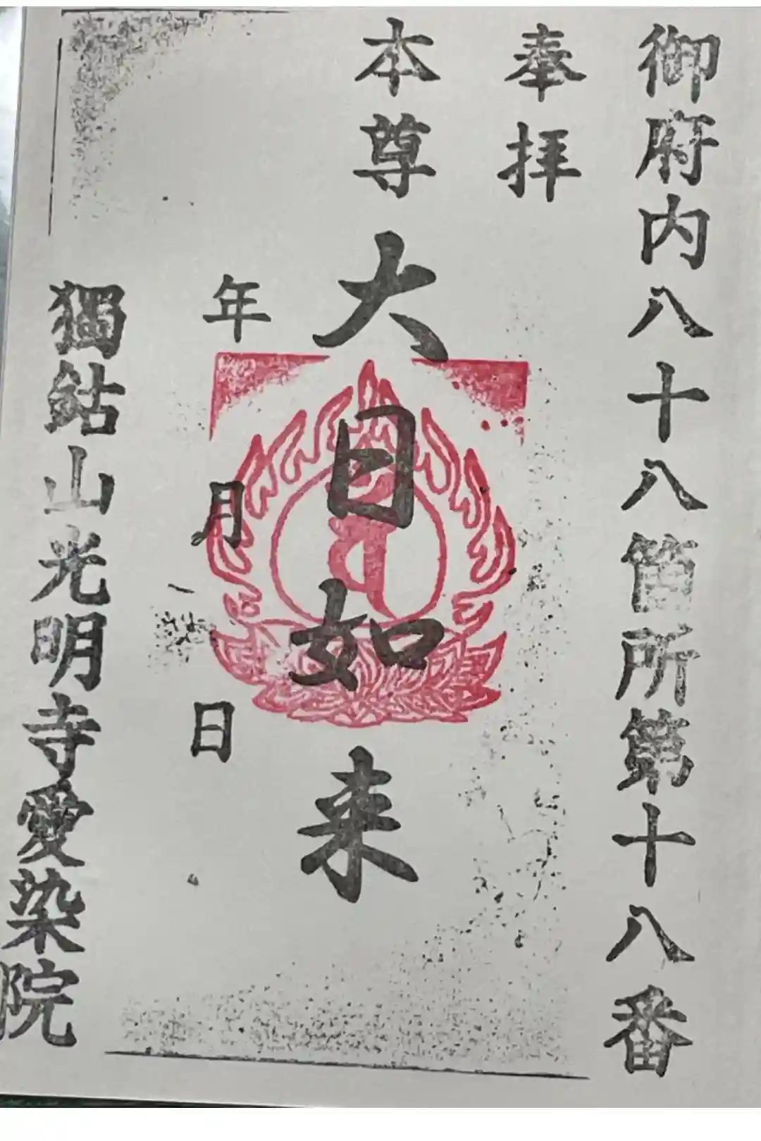 御府内八十八カ所の十八番札所です。御朱印は本堂の軒下にゴム印が用意されており、自分で押すようにな…
