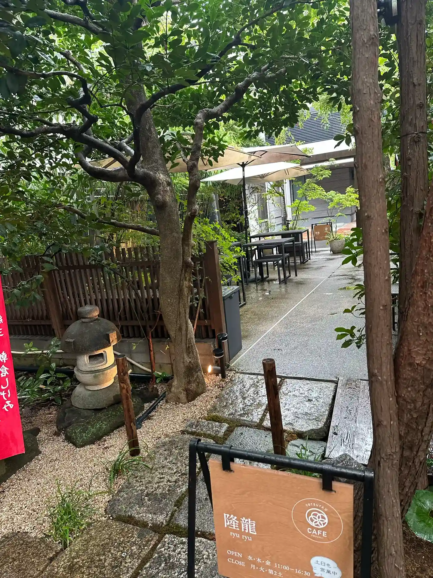 入ってすぐに本当にカフェの座席があります…!来訪時は既に閉店していましたが社務所の横には「Cafe」の文字がはっきりと…!お寺×カフェとは目から鱗です!