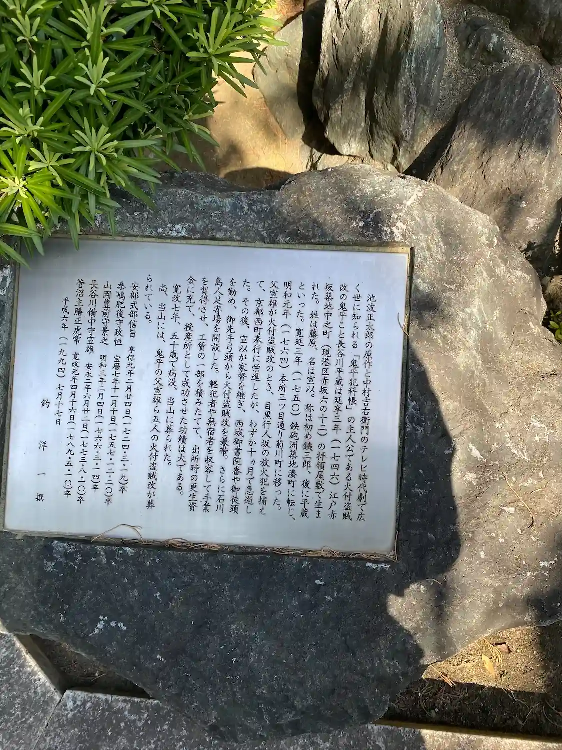 戒行寺の墓地には、一宮藩藩主家の加納家をはじめ、多くの旗本や武士の墓がありました。しかし、明治時代に士族が没落し、寺運が衰退すると、墓地の多くは杉並区へ移転されました。現在も、長谷川平蔵宣以の供養碑が当地に残っています。