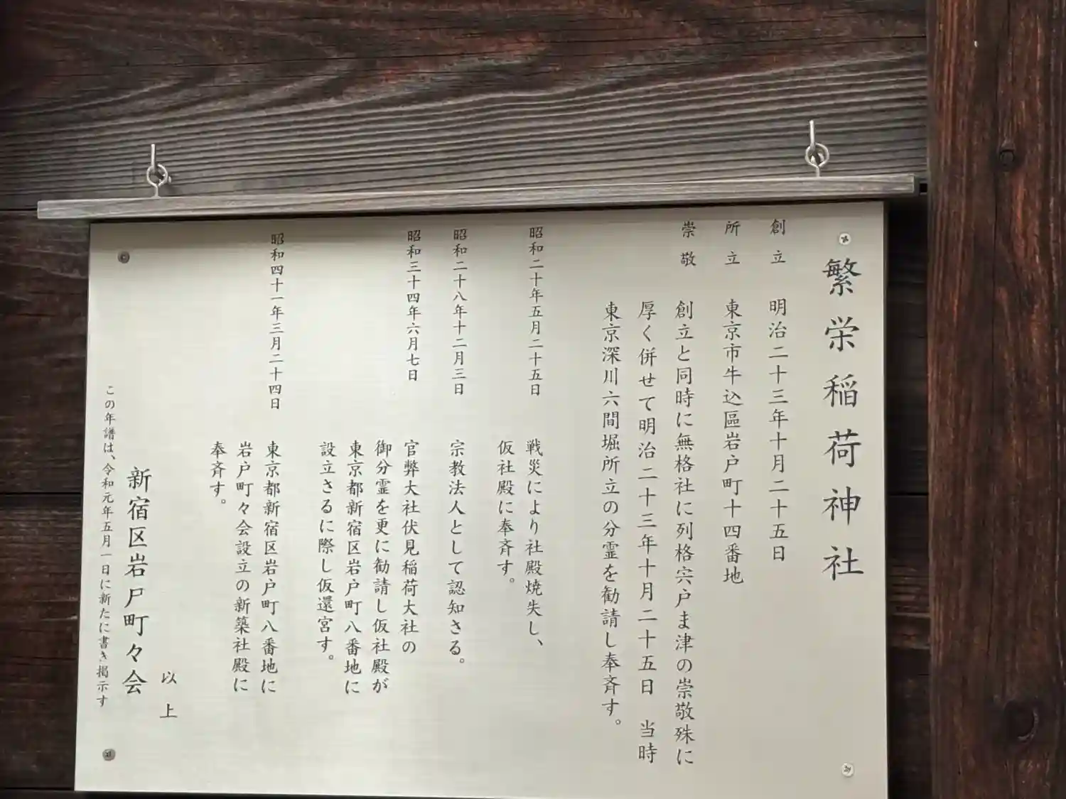 繁榮稲荷神社の扁額