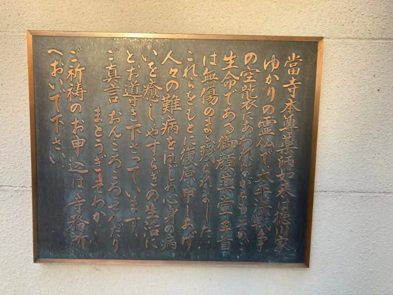 | ご本尊 | 本尊薬師如来 歓喜天 十一面観世音 厄除元三大師 大黒天 虚空蔵菩薩 愛染明王 三宝荒神 毘沙門天 妙見大菩薩 | |