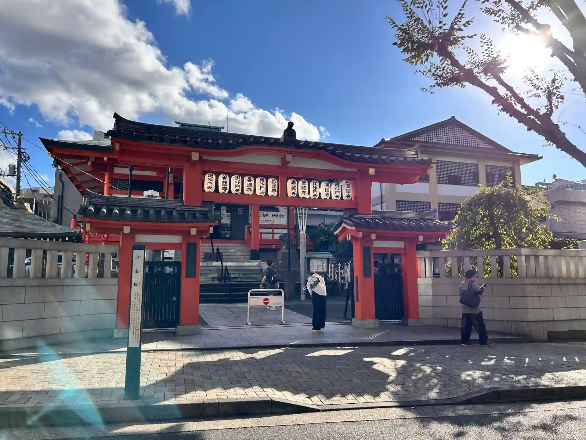 神楽坂にある、日蓮宗のお寺です。赤い塀が印象的。訪れた日はちょうど寅の日で、たくさんの方々が参拝にいらしてました。