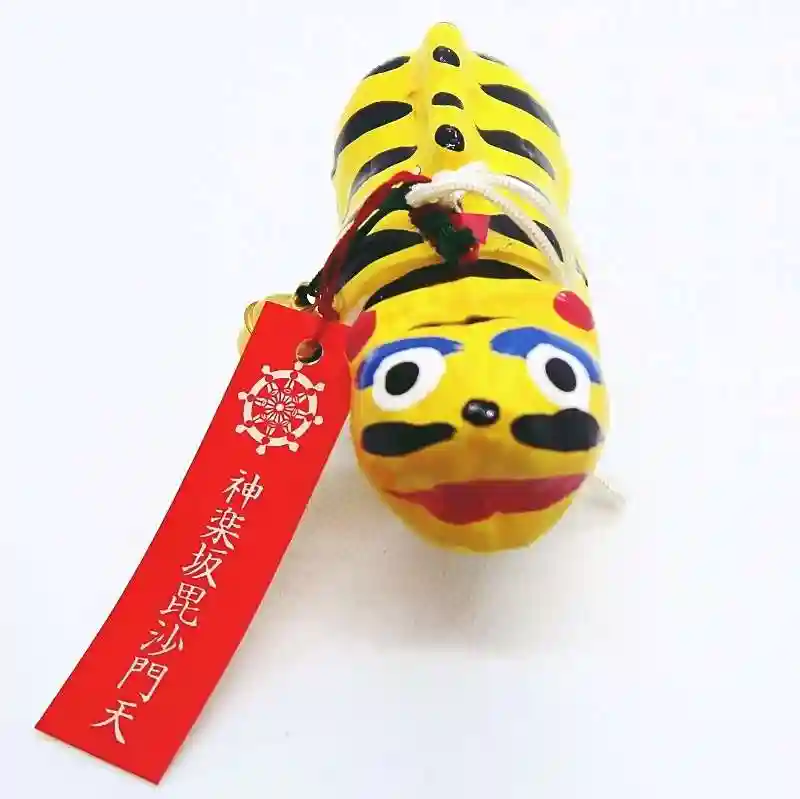 「神楽坂 毘沙門天」と書かれた赤い札が付いています。