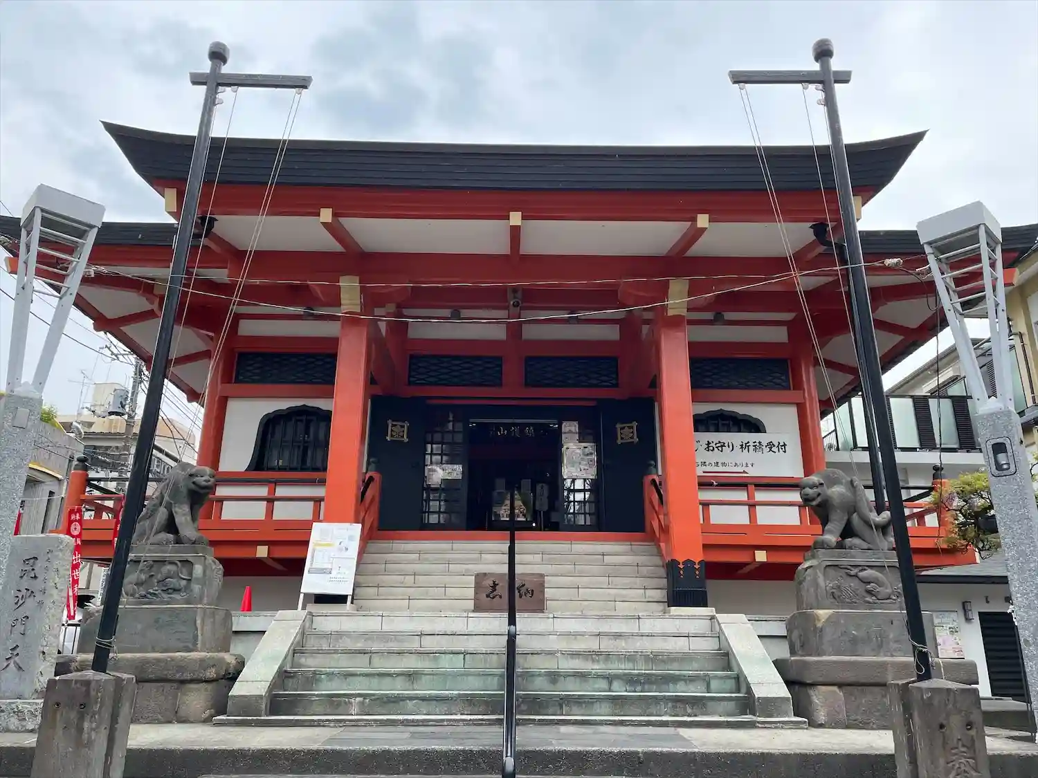 赤い山門が目印です。