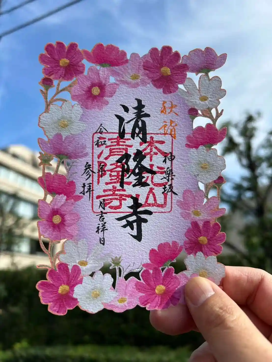 今回は「秋桜(コスモス)」の切り絵御朱印をご紹介いたします。