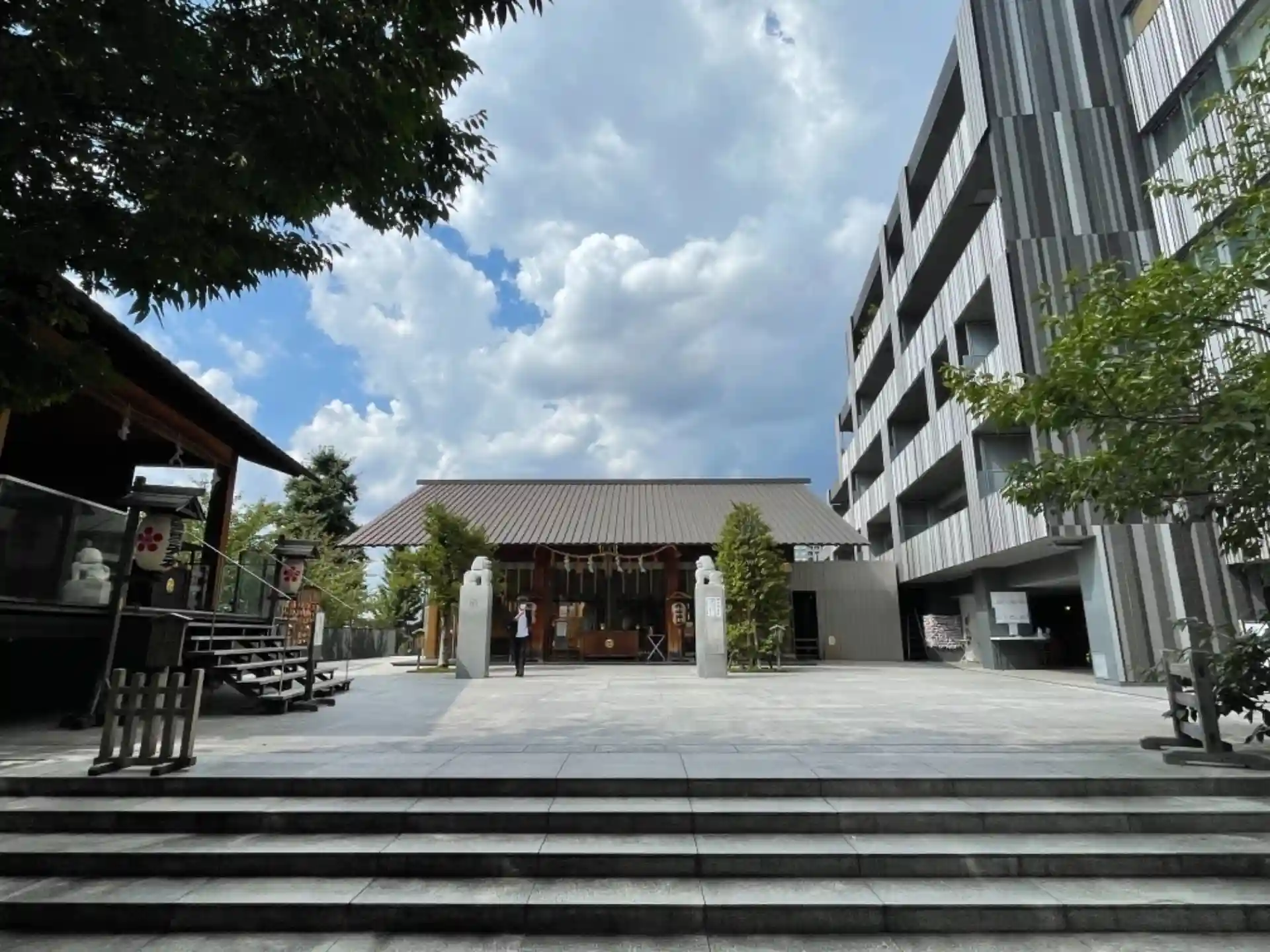 現代型の赤城神社@神楽坂。境内一面に敷き詰められた石畳、ガラス張りの拝殿、現代感覚でとてもすっきりした神社です。