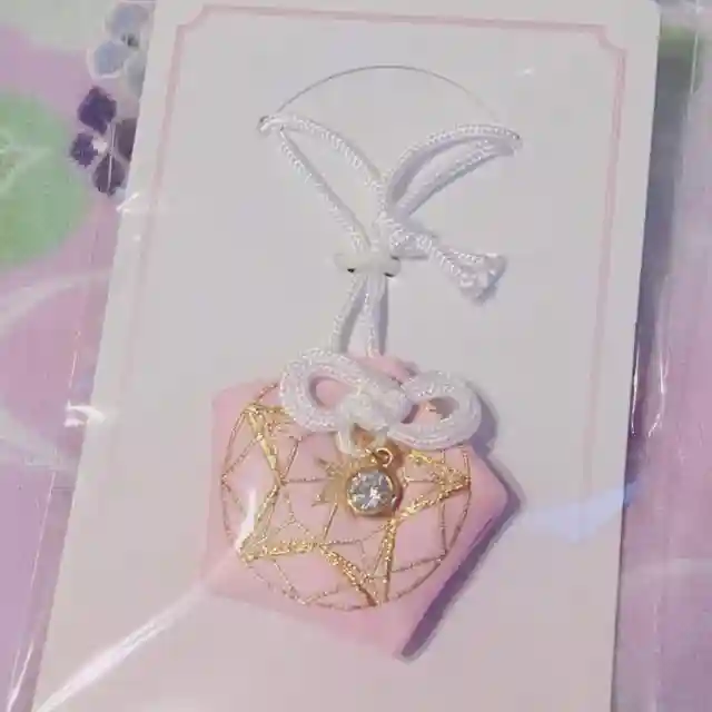 今年の七夕のお守り。今年のピンクは薄いピンクでかわいいです(*^^*)もう一色は昨年はネイビーでしたが今年は薄い緑でした。まさに翡翠の色かな。私か来たときはそんな売れてる感なかったけどね笑