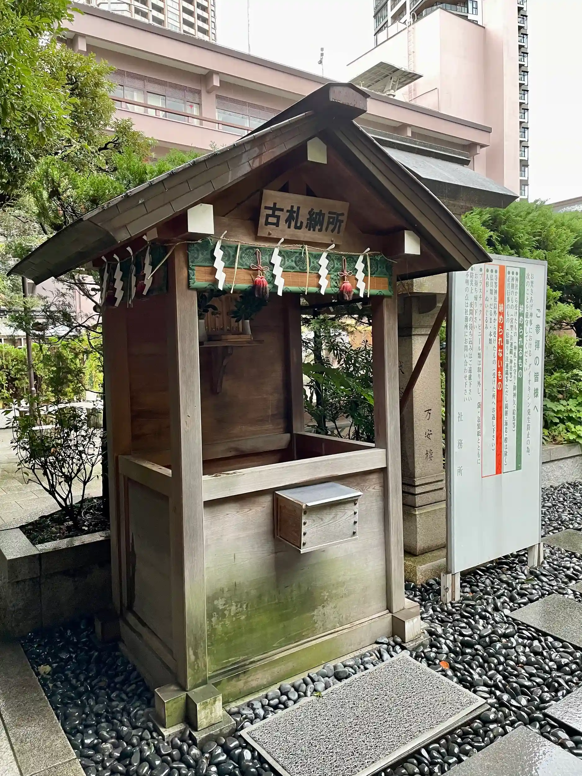 伊勢神宮の神々を祀ることから「東京のお伊勢さま」と呼ばれ、また神前結婚式創始の神社であることから、縁結びのご利益で有名である。