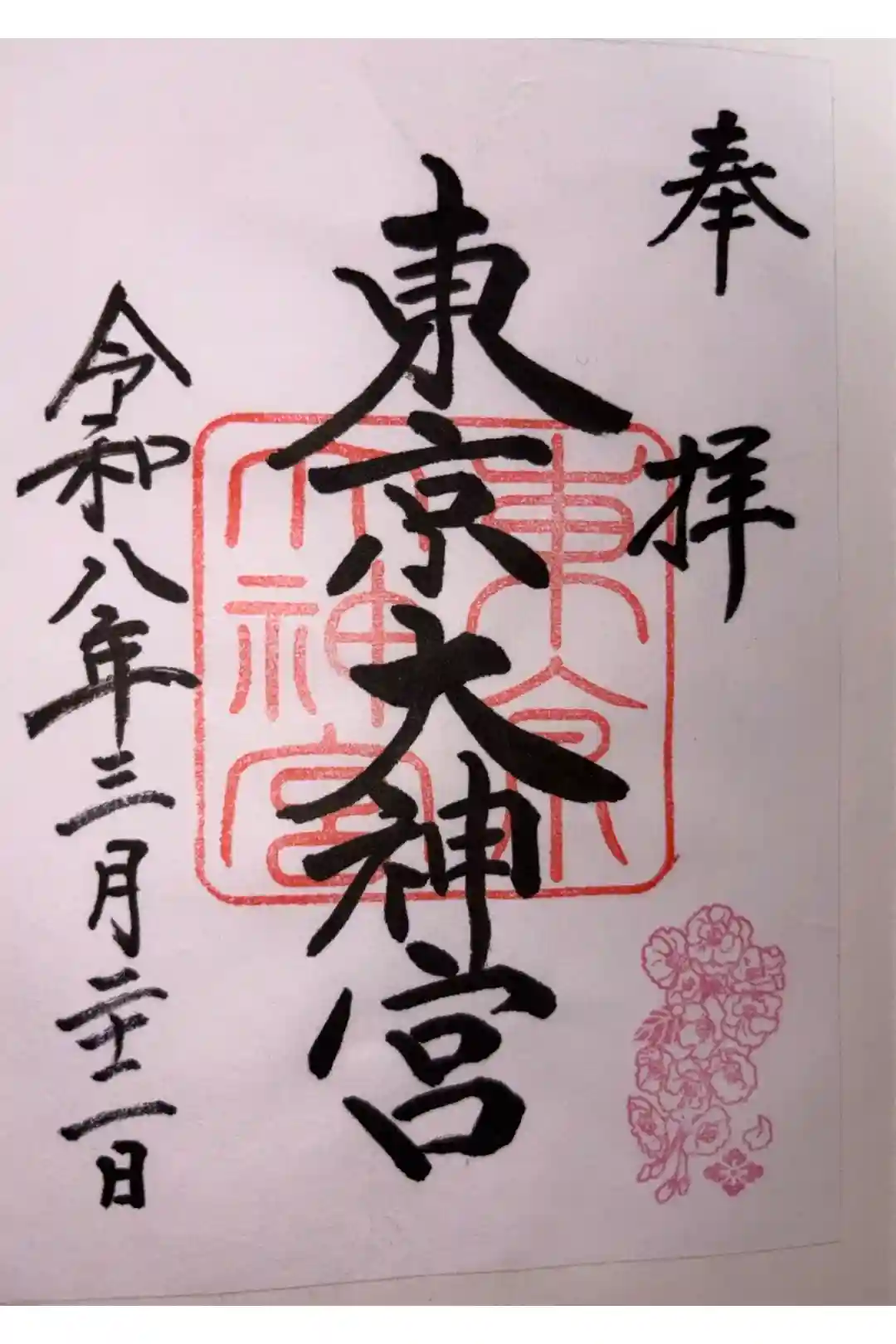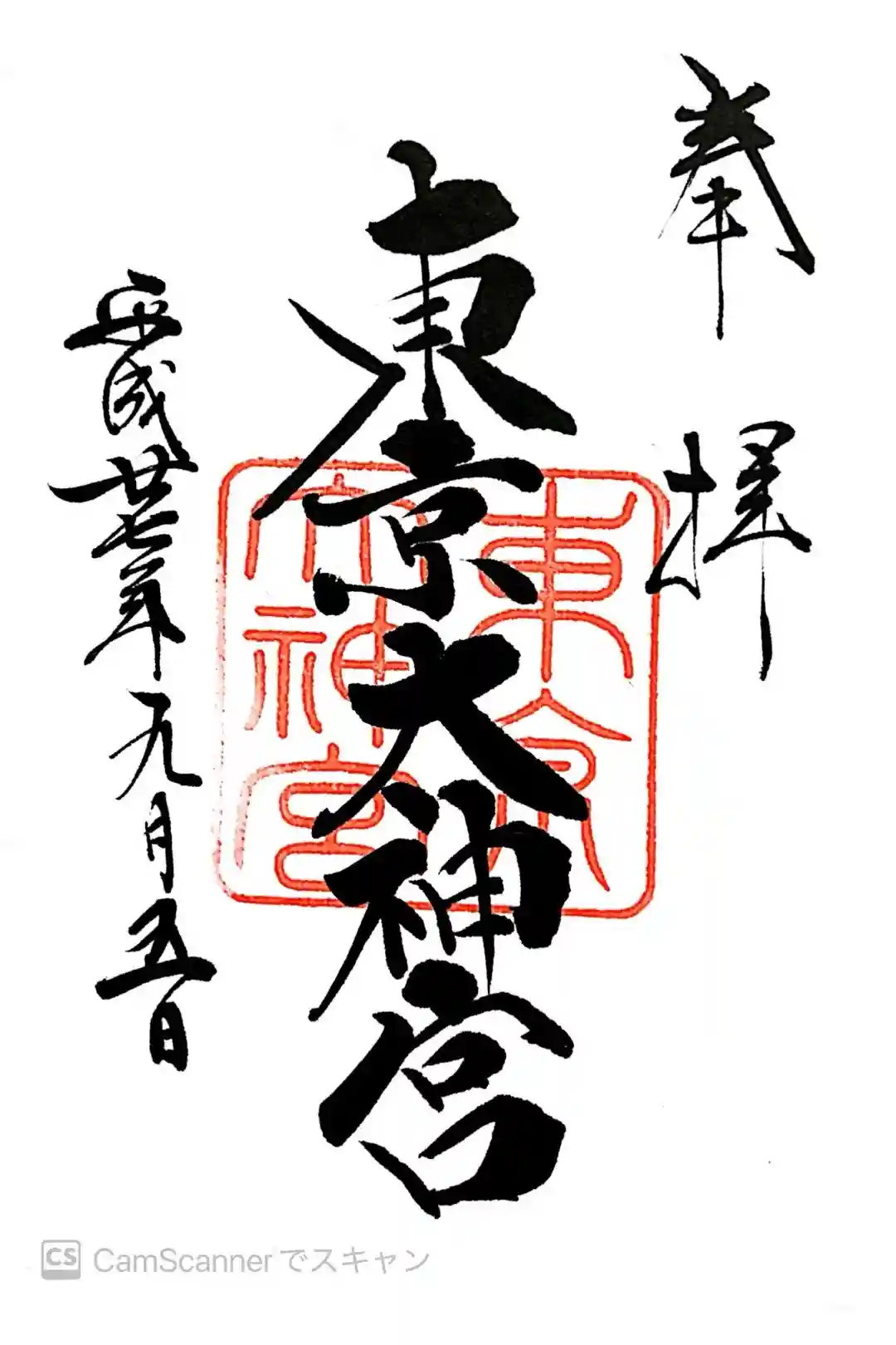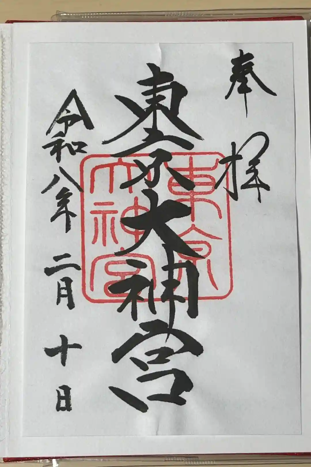 真ん中に東京大神宮の印が押された御朱印です。