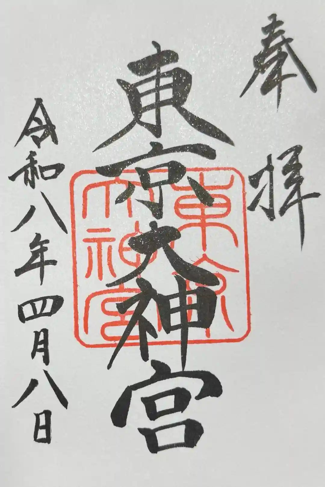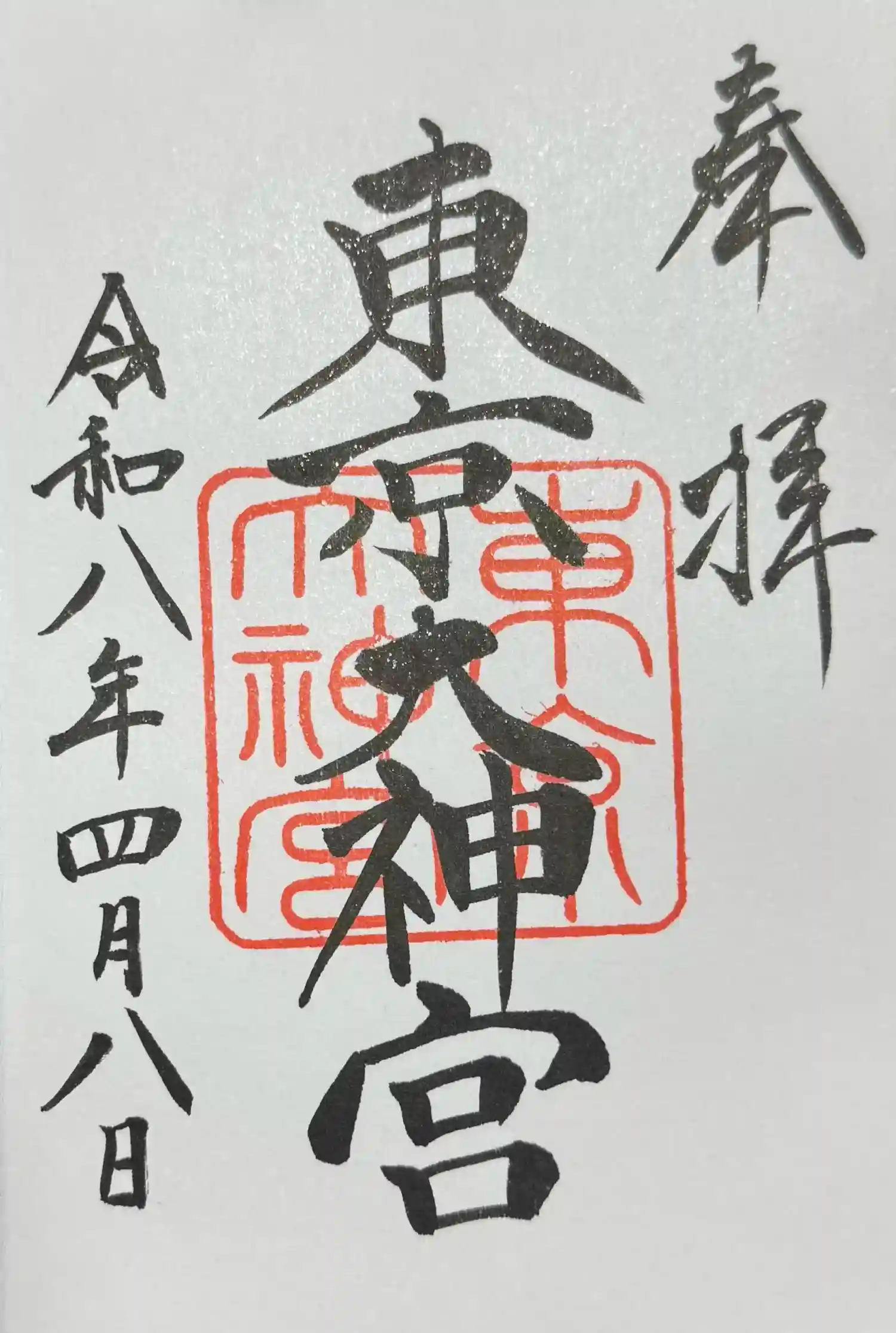 真ん中に東京大神宮と書かれ、東京大神宮の印が押されたシンプルな御朱印です。