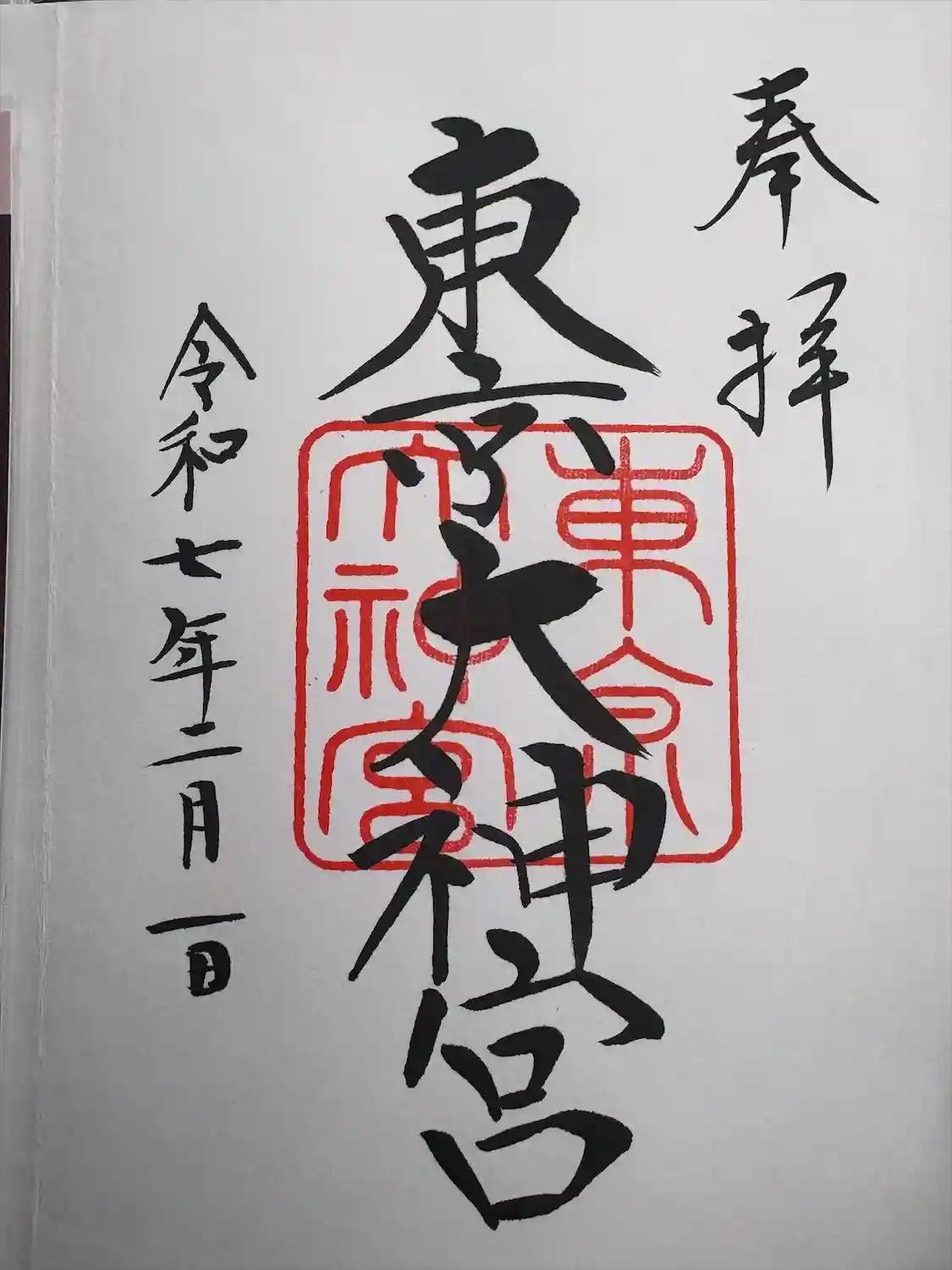 東京大神宮の御朱印を直書きでいただきました。