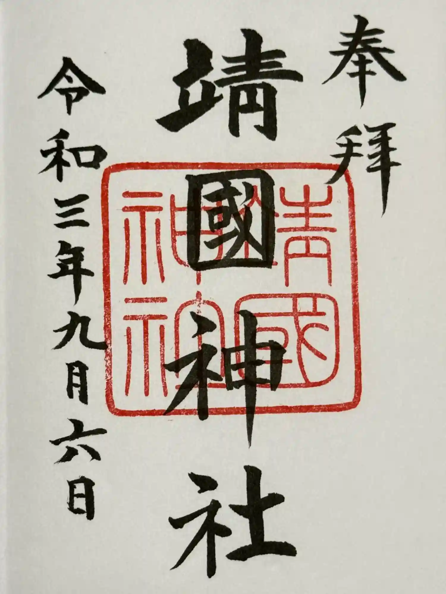 | 御朱印 | あり 真ん中に靖国神社の印が押されてる御朱印です。みたたままつりの期間中は期間限定の御朱印がいただけます。