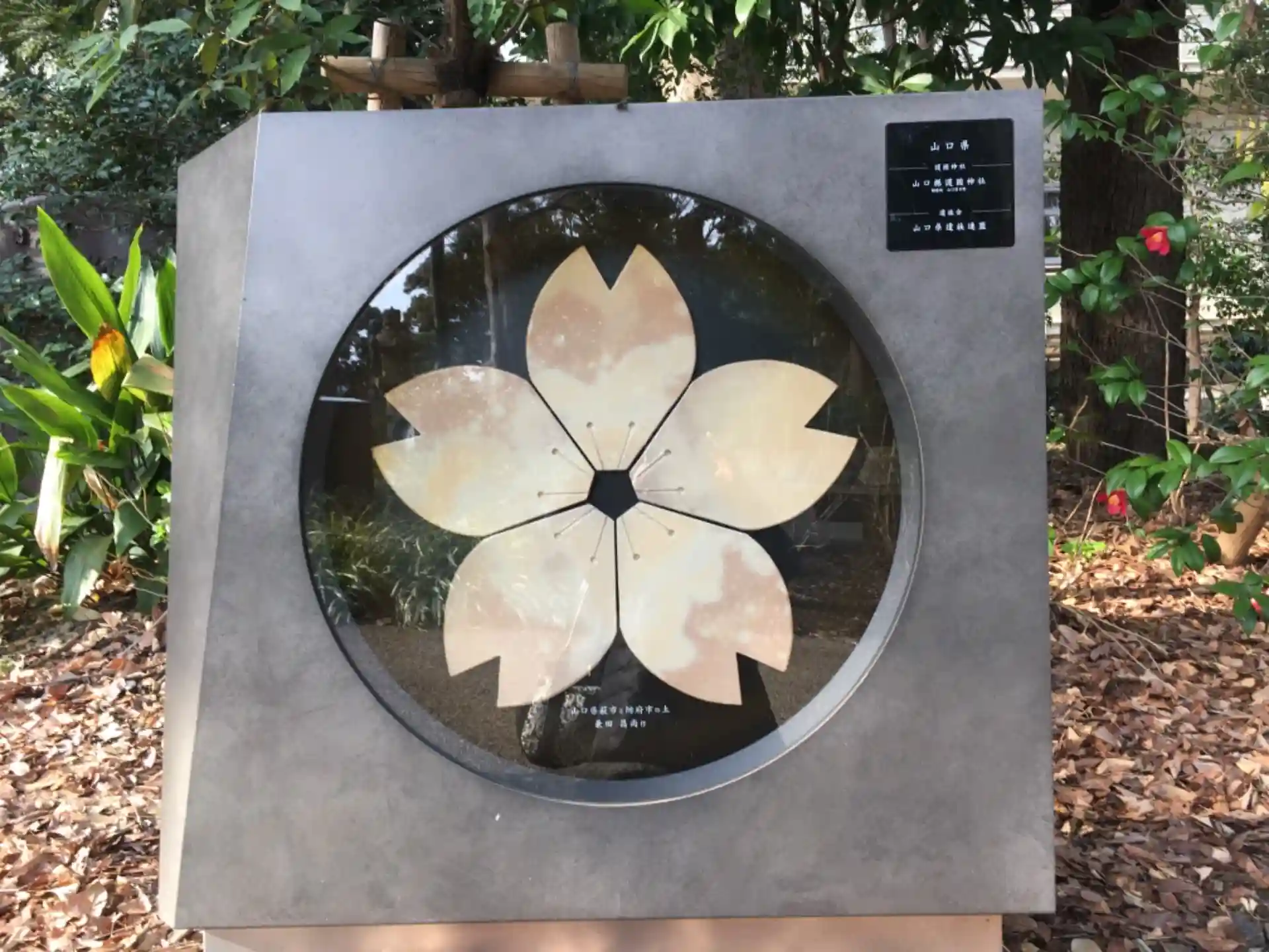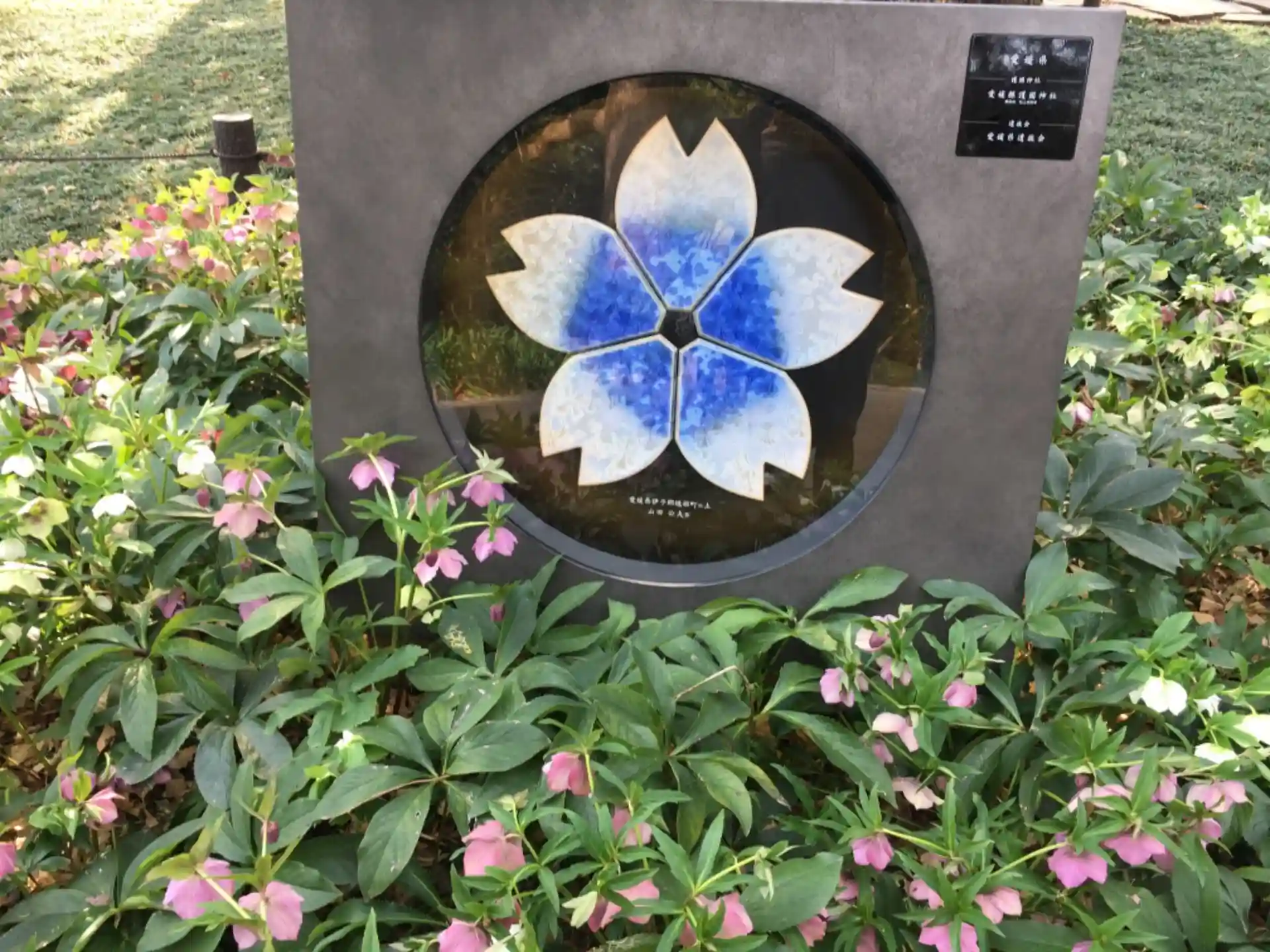クリスマスローズに囲まれた「さくら陶板」。これは愛媛県のですが、47都道府県あります。御魂が生前に踏んで暮らしたであろう故郷の土を使って慰霊するという素晴らしい発想だと思いました。