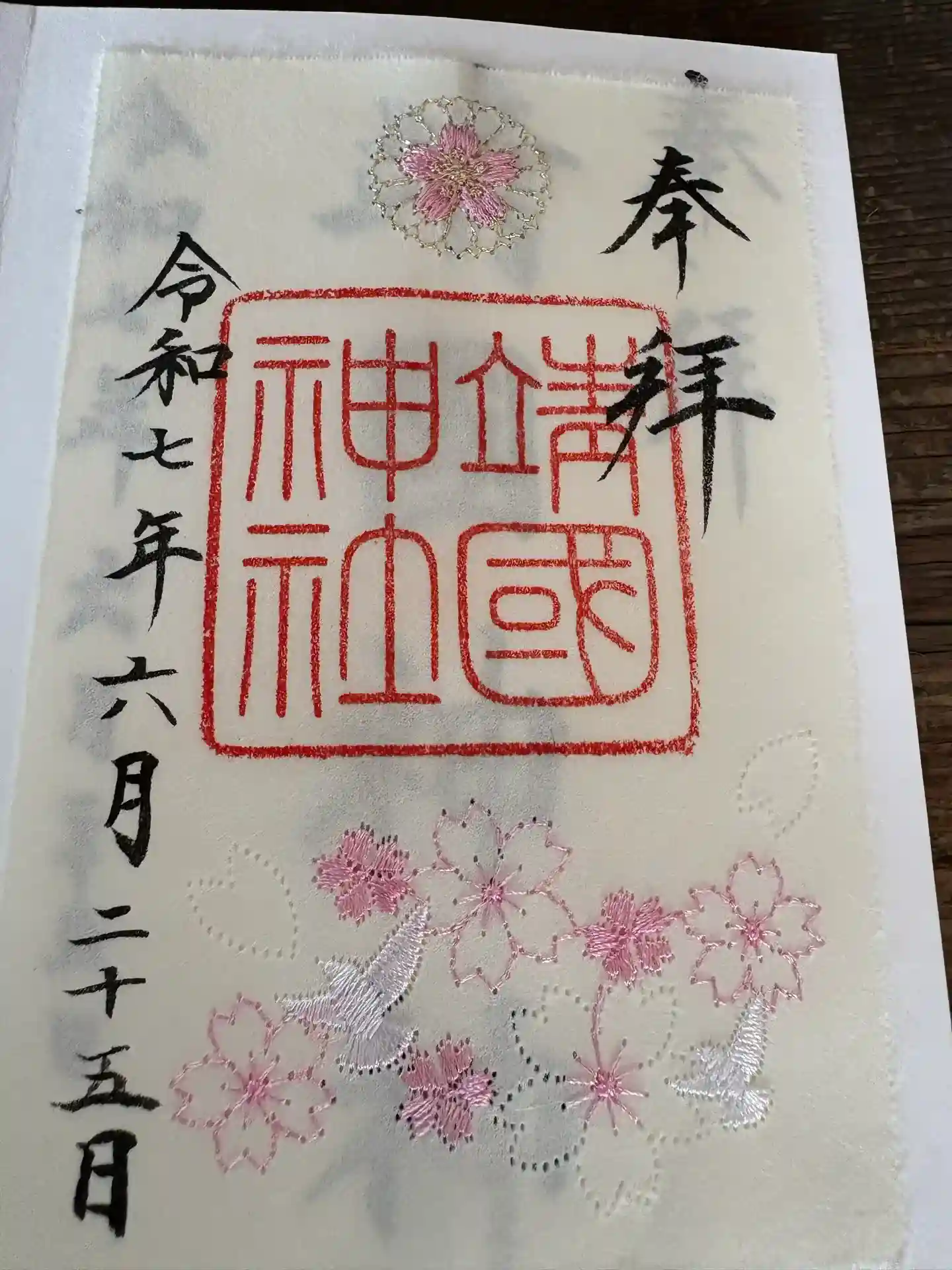上に重ねて書き置き刺繍御朱印を貼って頂きました。
