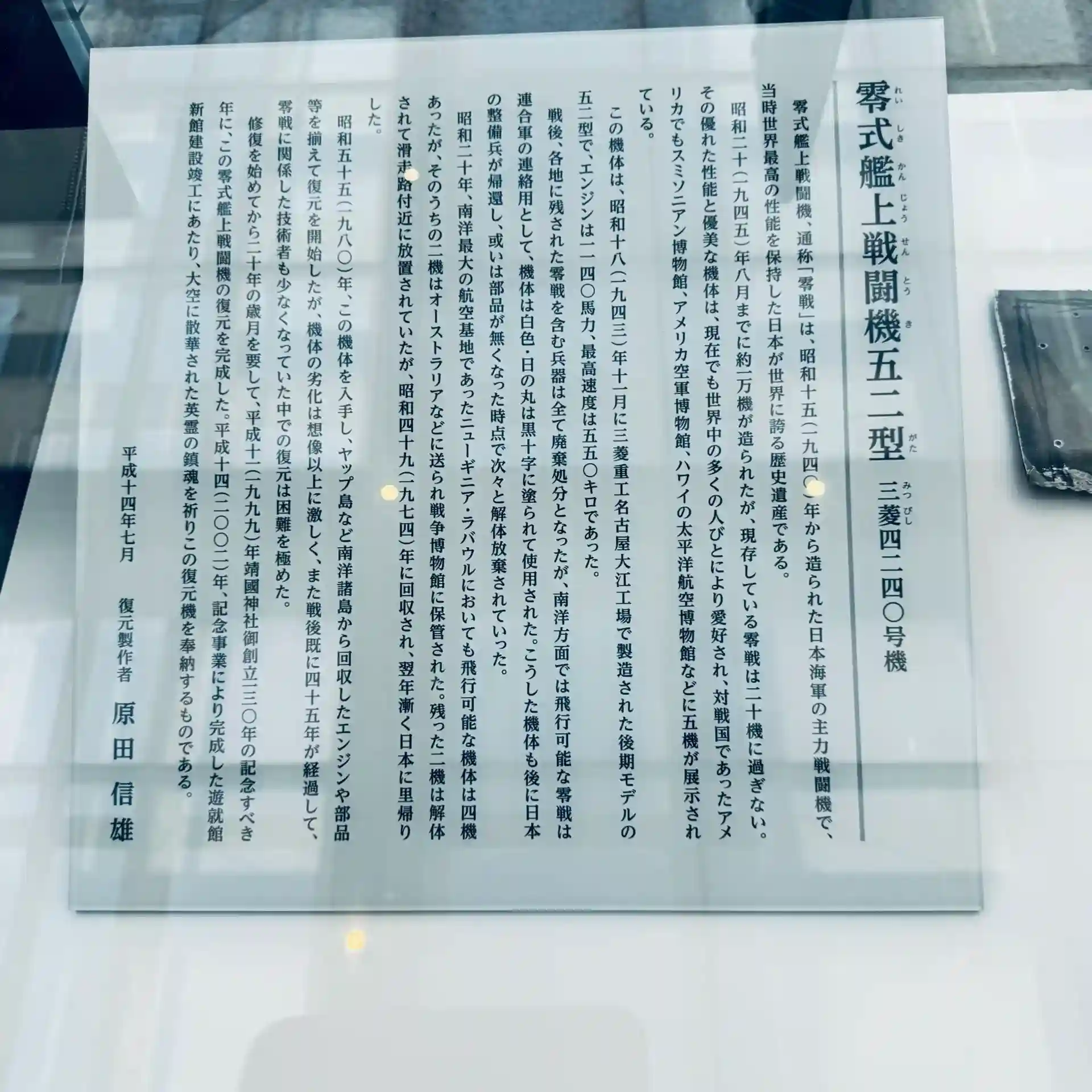 遊就館内の52型零式艦戦