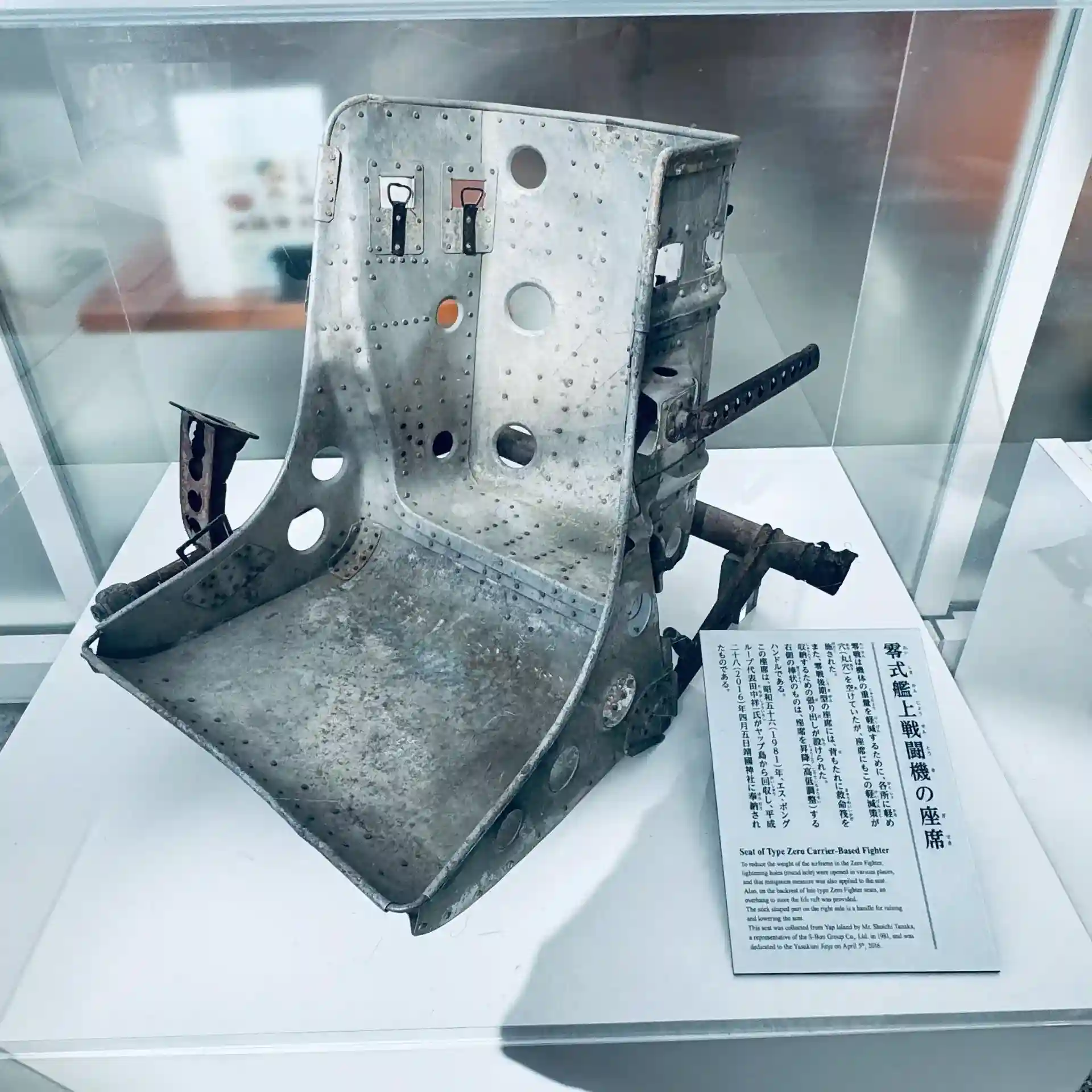 零式艦戦の座席 軽量化の為肉薄され防御性能は、皆無です。