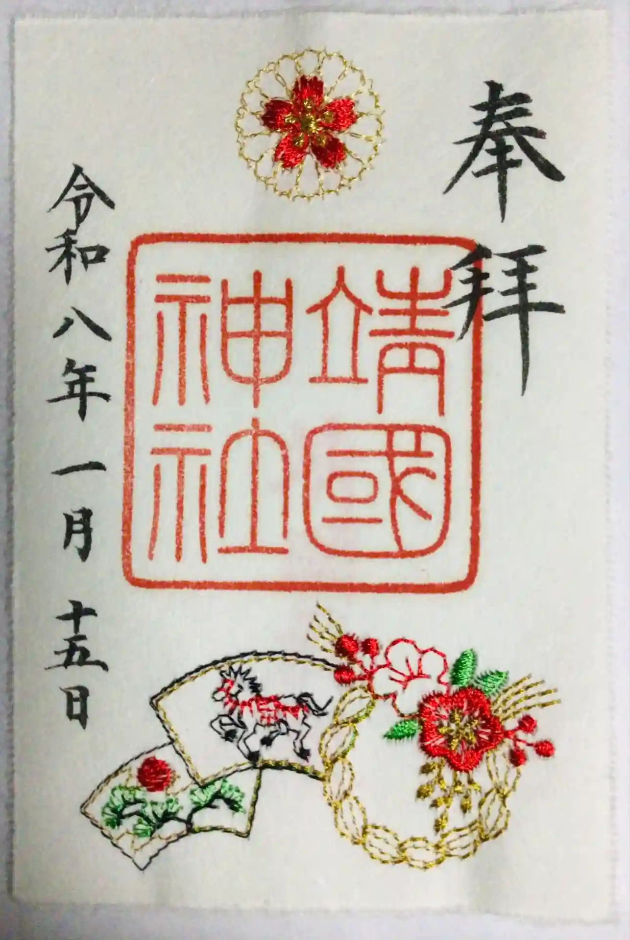 1/1〜限定枚数で頒布中のお正月の刺繍御朱印も頂きました。