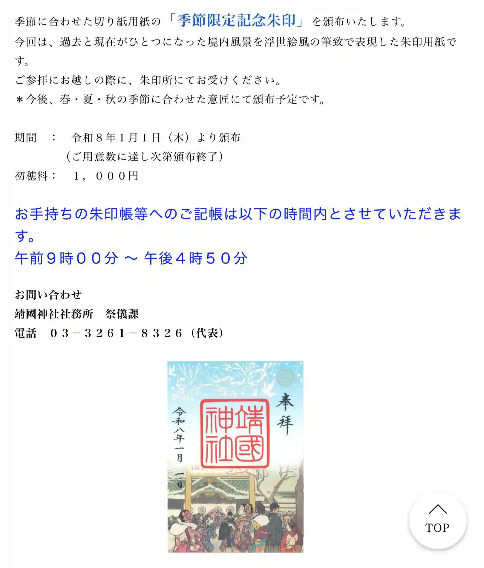 同じく1/1〜頒布中の「季節限定切り絵朱印」が、頂いていません。