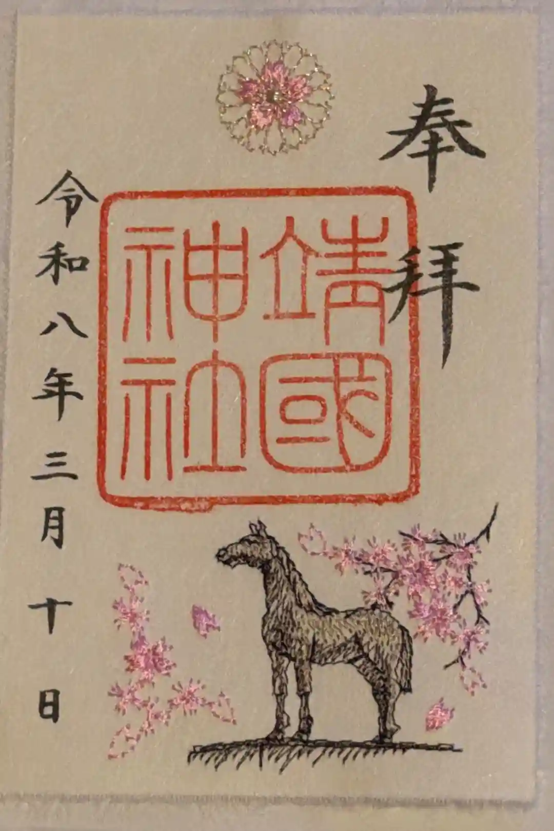 白色(社紋・桜柄)の御朱印