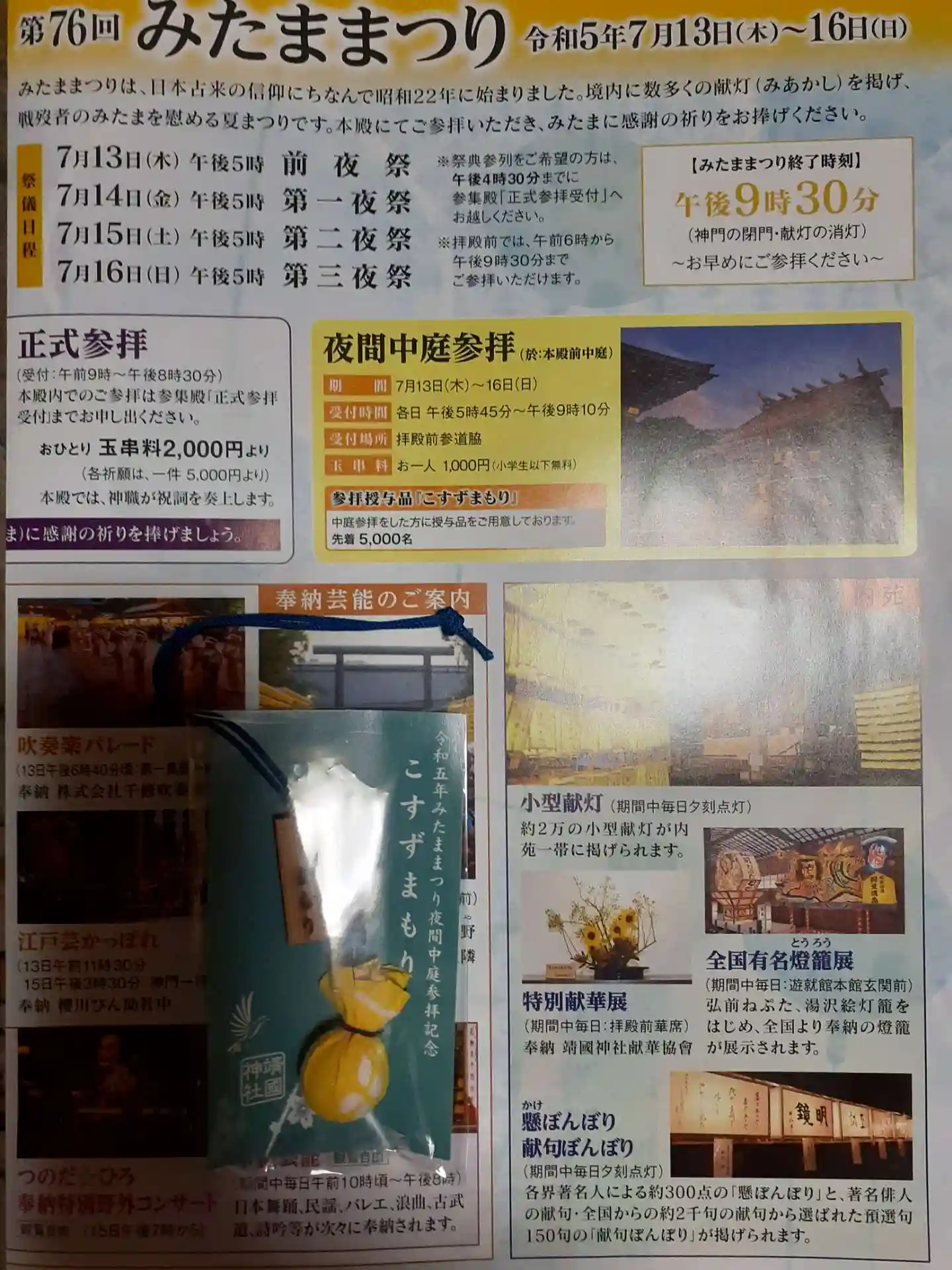 “夜間中庭参拝”で「こすずまもり」を頂きました。小さいのに、かなり良い音色がします。
