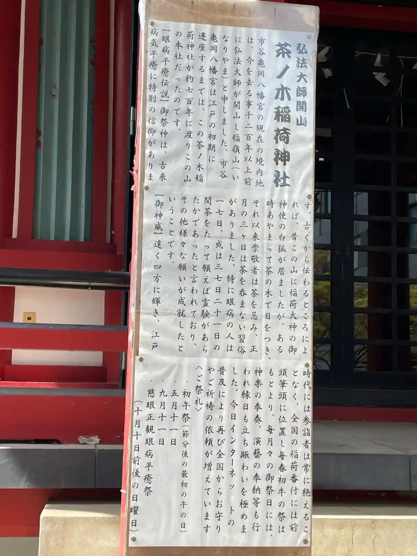 茶ノ木稲荷神社⛩️へ参拝🙏🦊御祭神は、稲荷大神【いなりおおかみ】(元々此地の地主神、稲荷山と言われた此丘に数多く祭られていた稲霊、年神様の主神である)、保食神【うけもちのかみ】、空海が関東下向の時に開山、幅広いご利益、特に眼病にきくとのことでした。市谷亀岡八幡宮に向かう階段の途中にあります✨