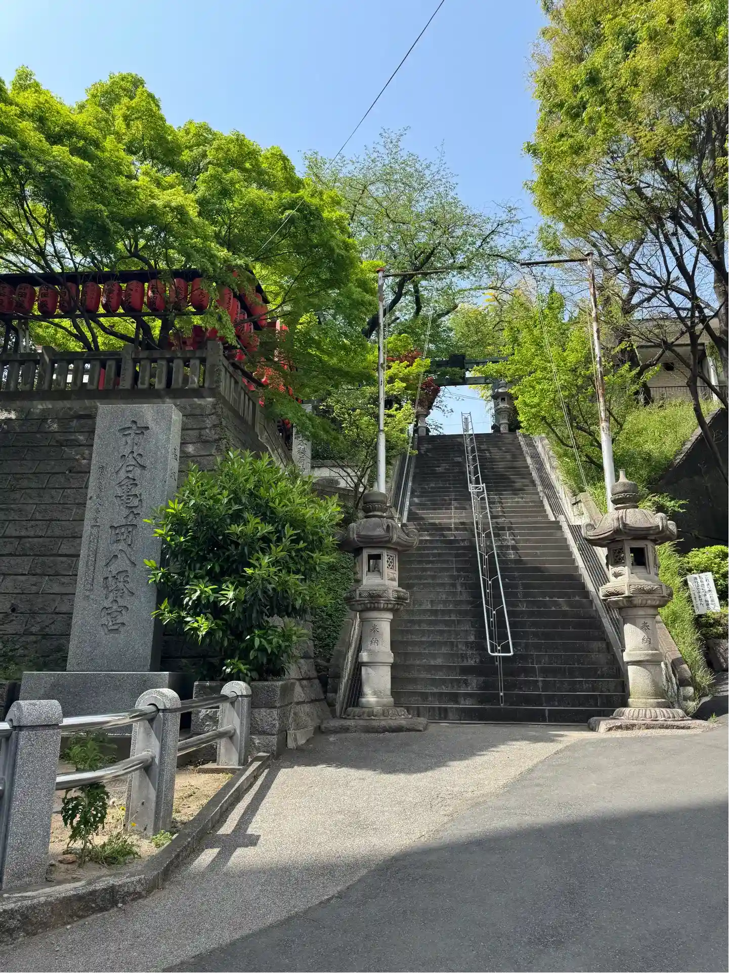 亀岡八幡宮の急な階段の真ん中にあります。