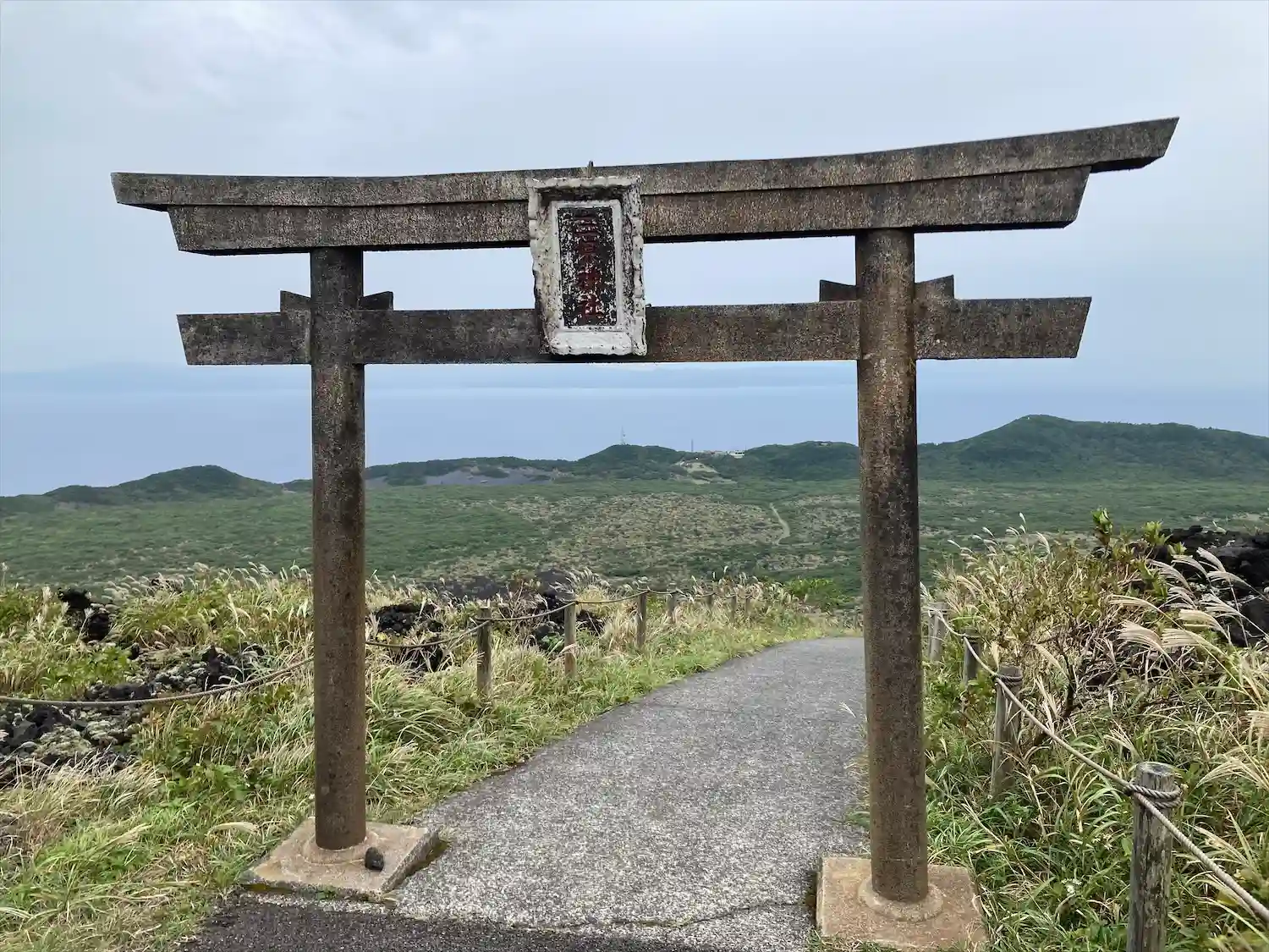 伊豆大島三原山山頂付近にある、鳥居から下る神社。御神火のパワーん感じる絶景神社です。