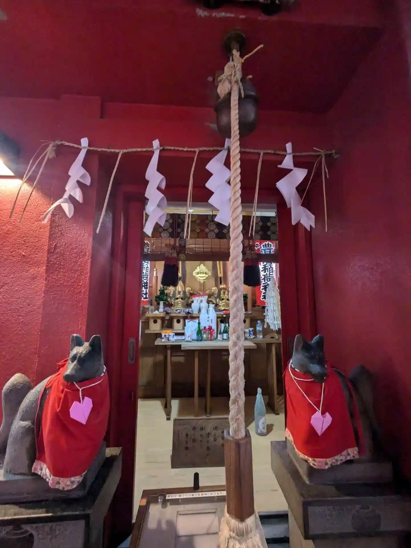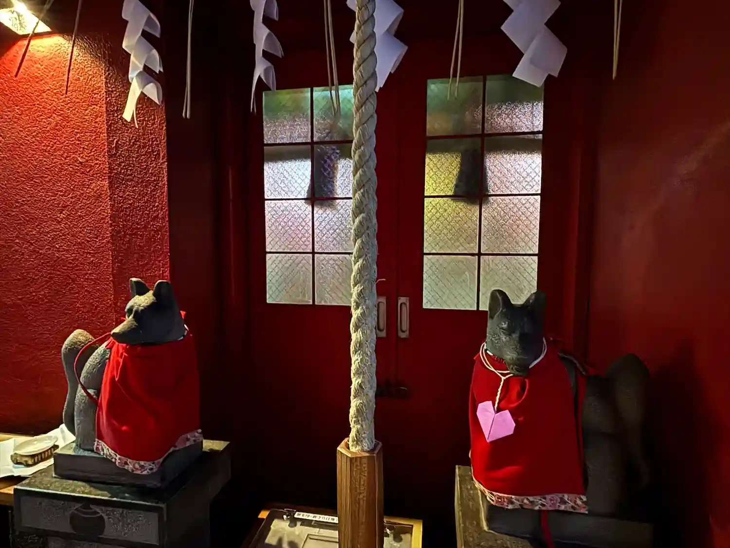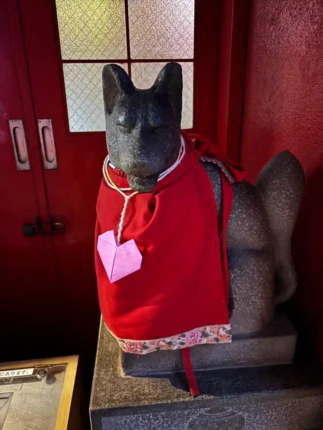 片方の狛狐だけハートの飾りが