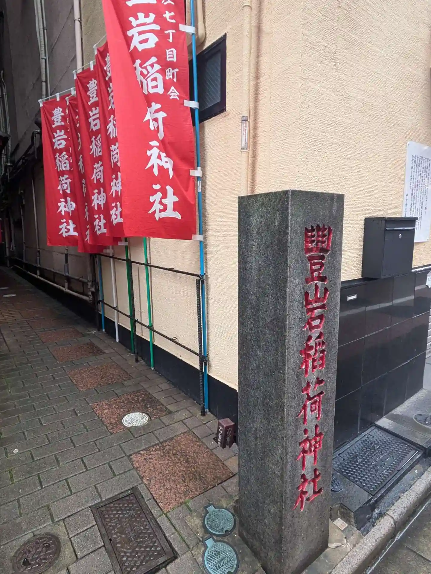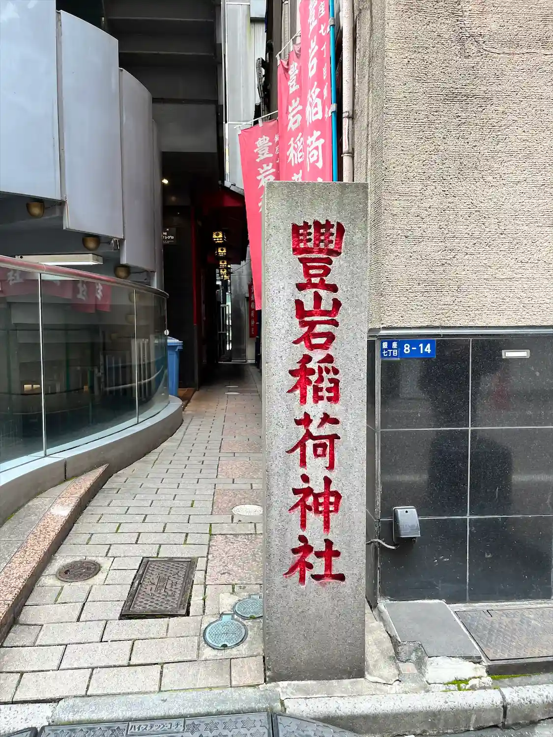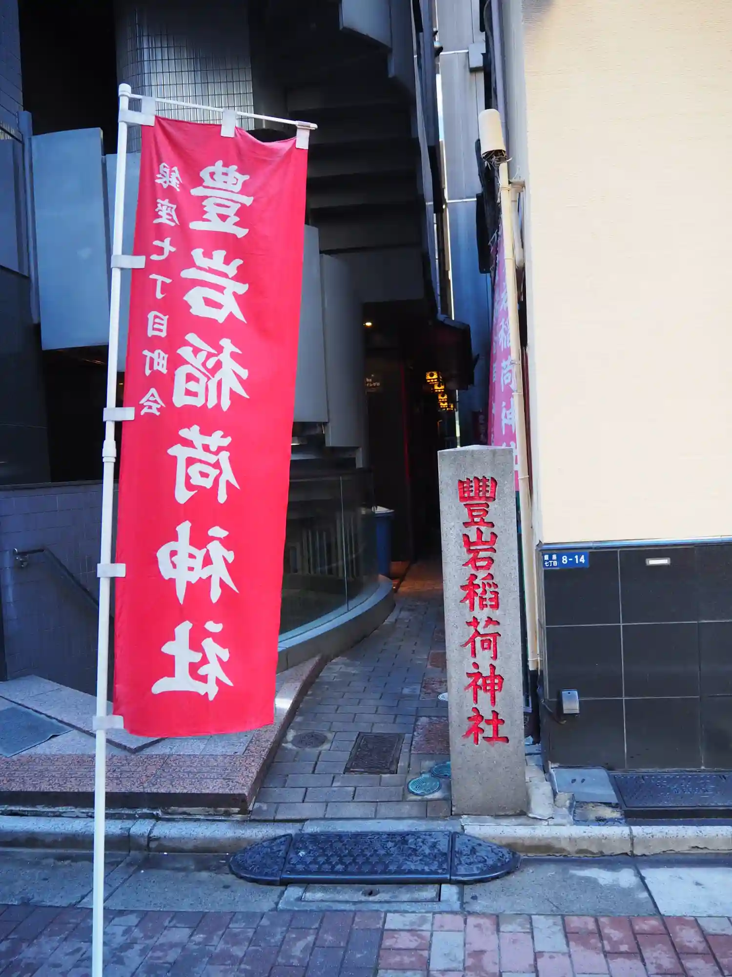 銀座七丁目にある豊岩稲荷神社に所要の合間に参拝しました。ビルとビルの間のとても狭い通路がL字上に2…