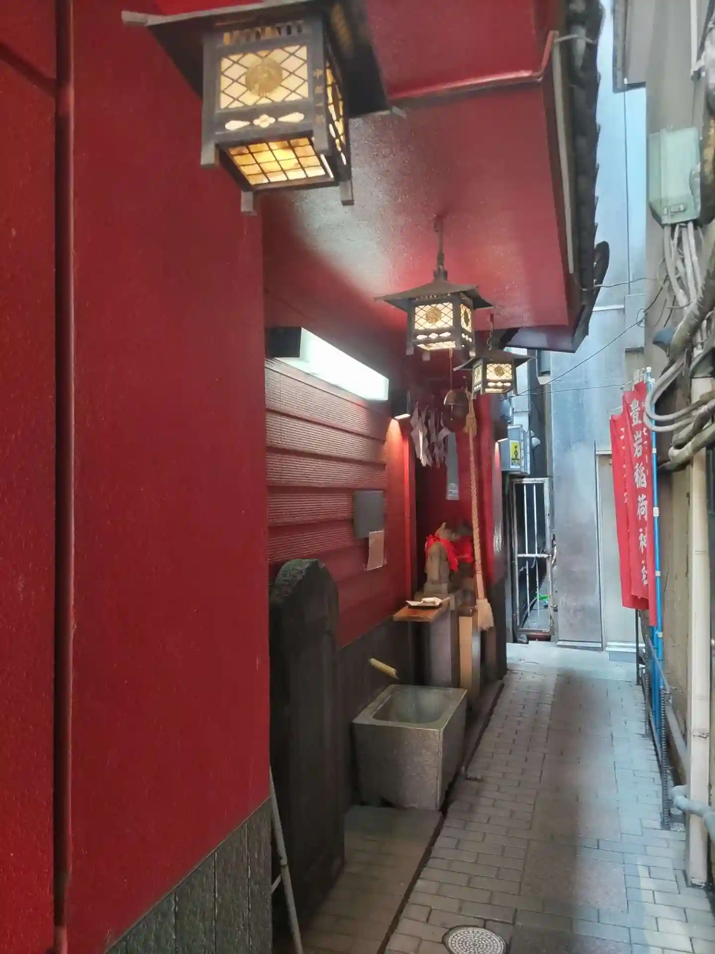 せっまい路地裏にひっそりと佇むお稲荷さん。