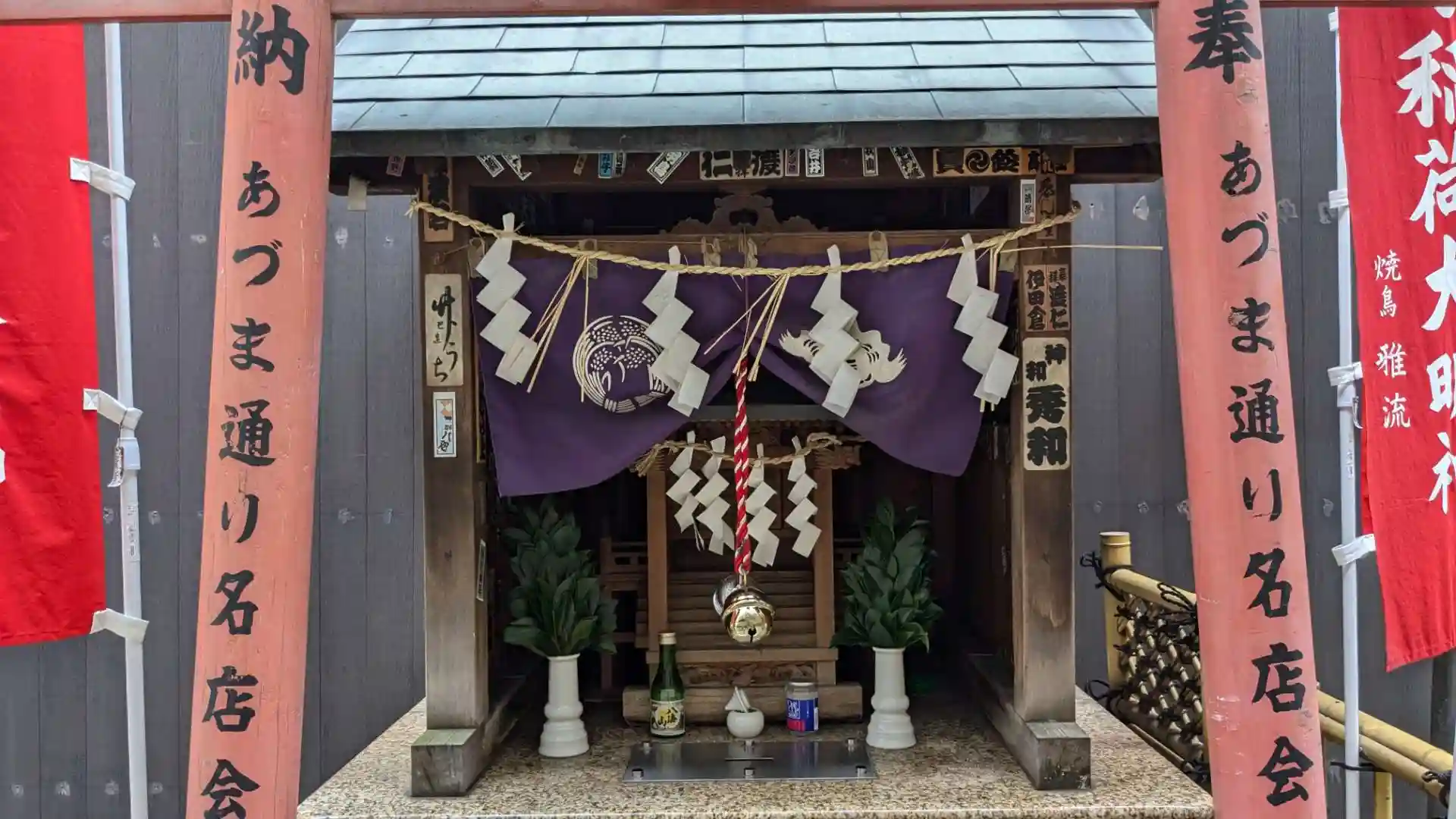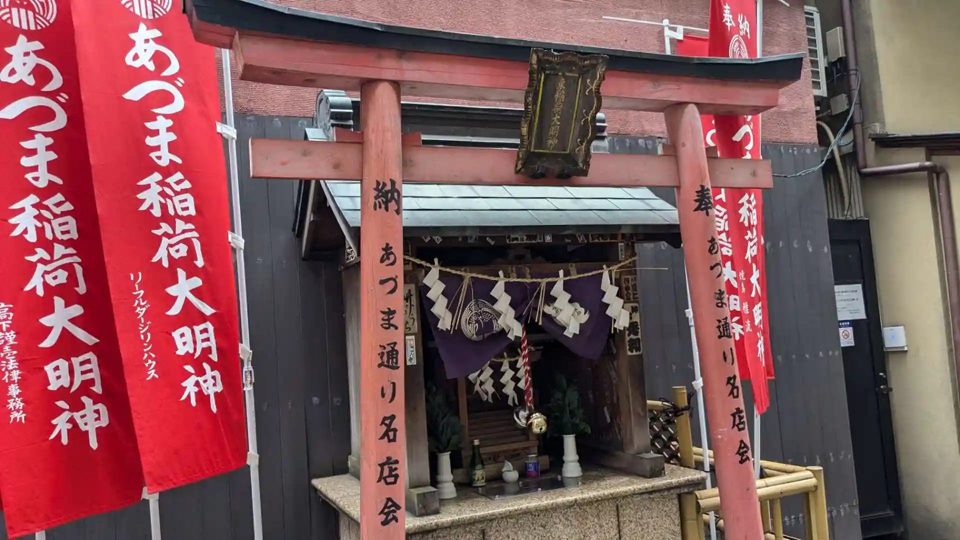 東京都中央区銀座のあづま通りから伸びる三原小路の一角にあるお稲荷様。