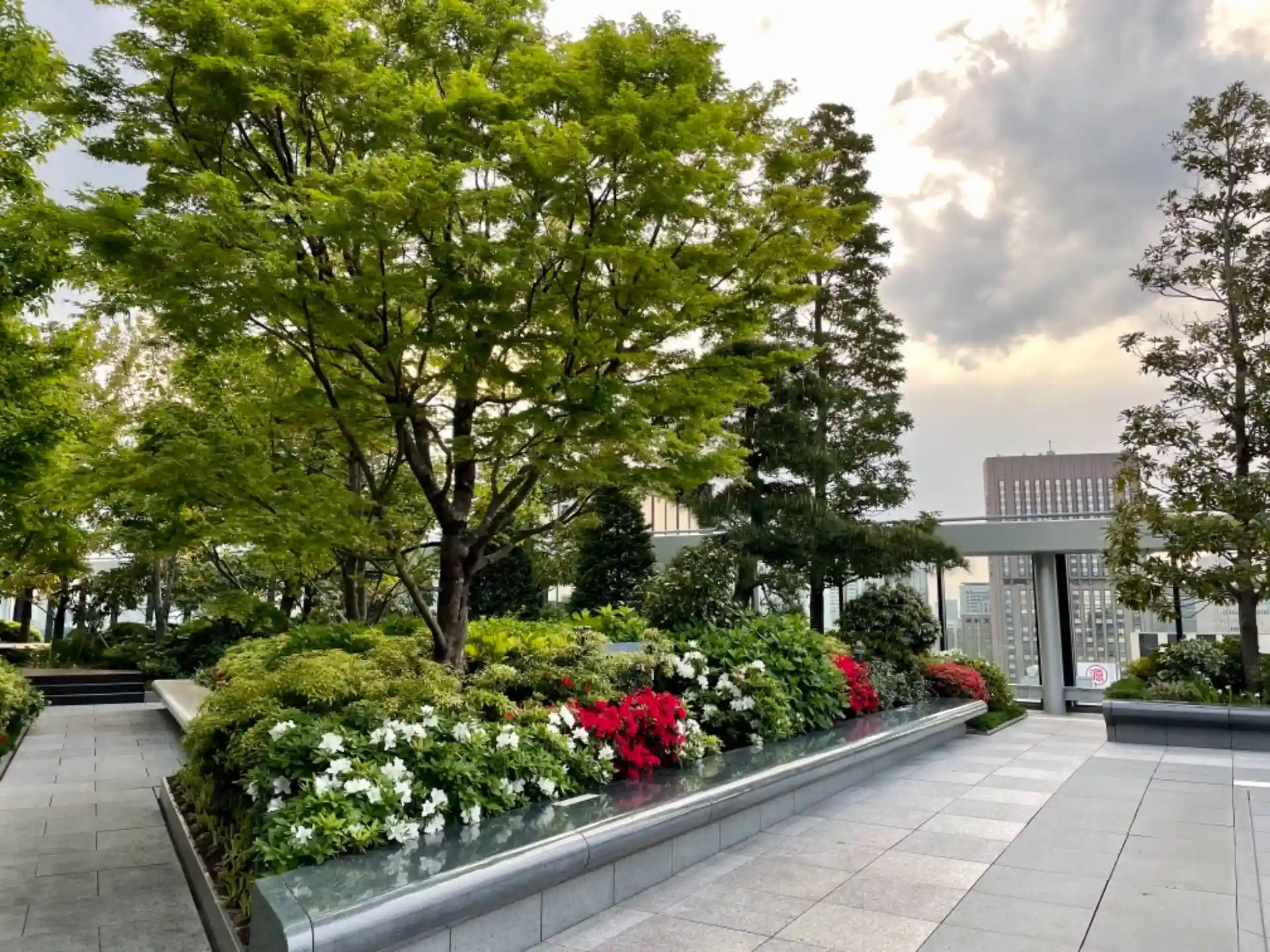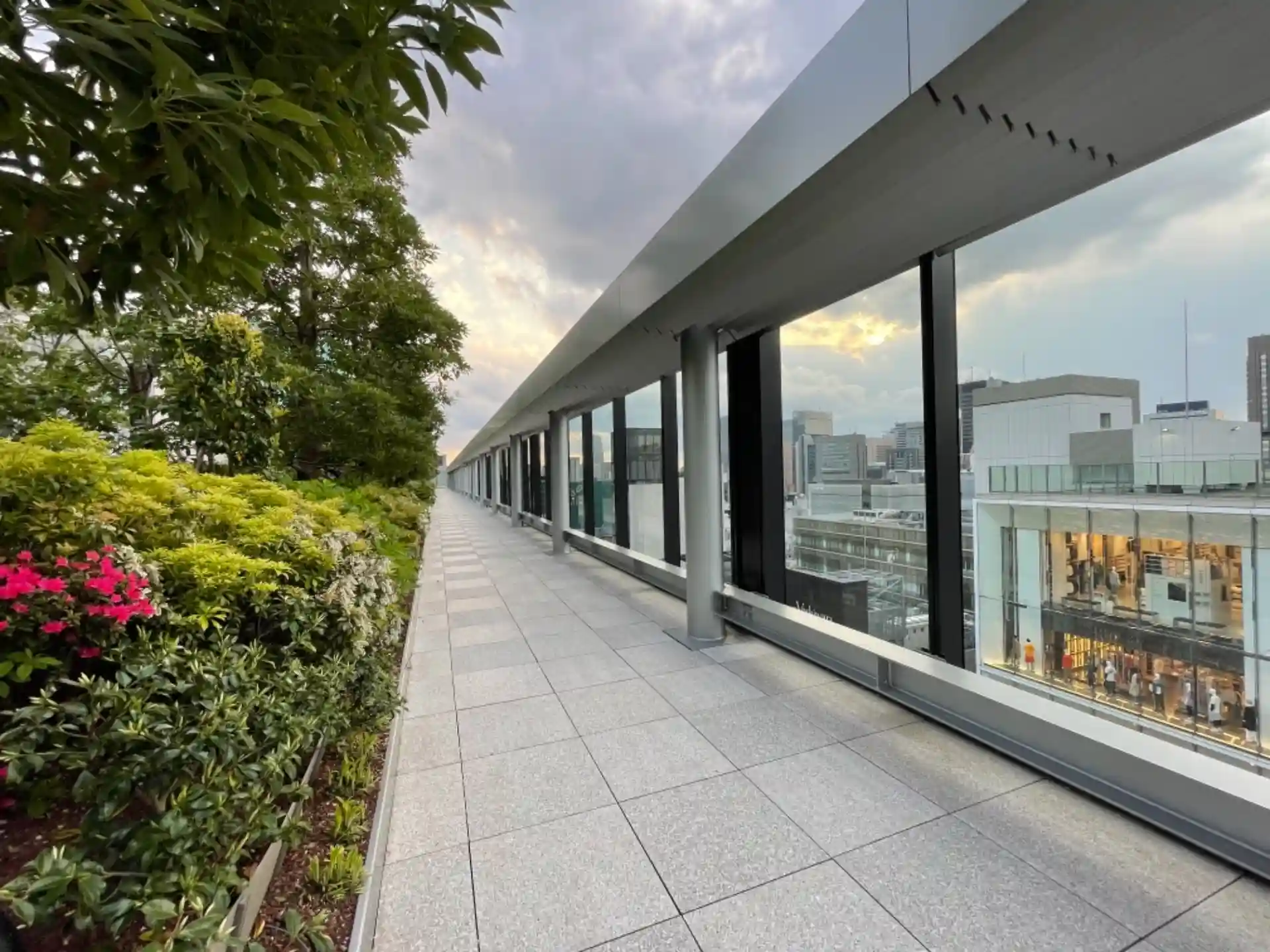 とても広い屋上庭園で、神秘的な雲の光景が素敵ですね〜🤗✨