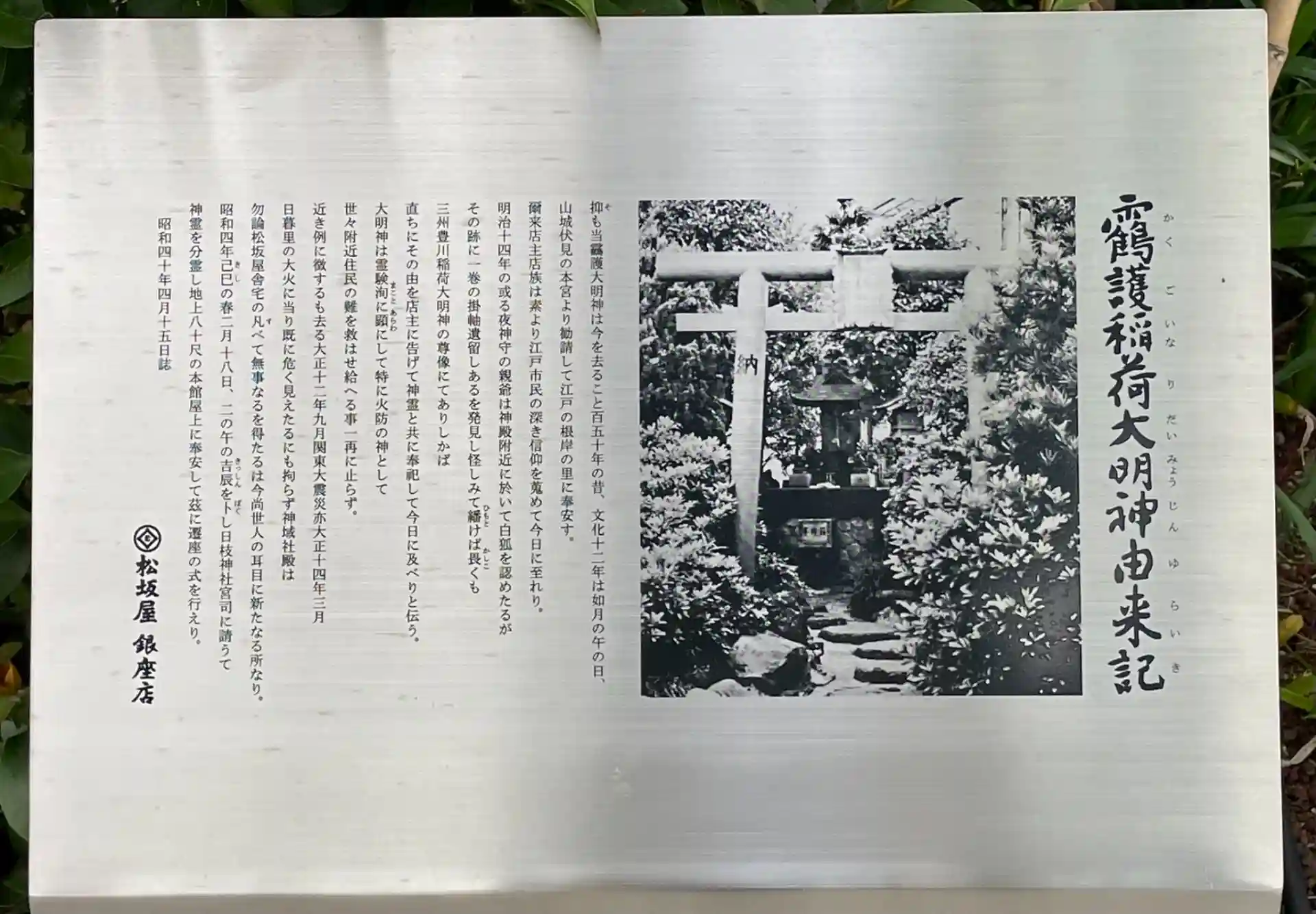 銀座の複合商業施設 GINZA SIX(ギンザシックス)の屋上庭園「GINZA SIX ガーデン」に鎮座するお稲荷さまです。