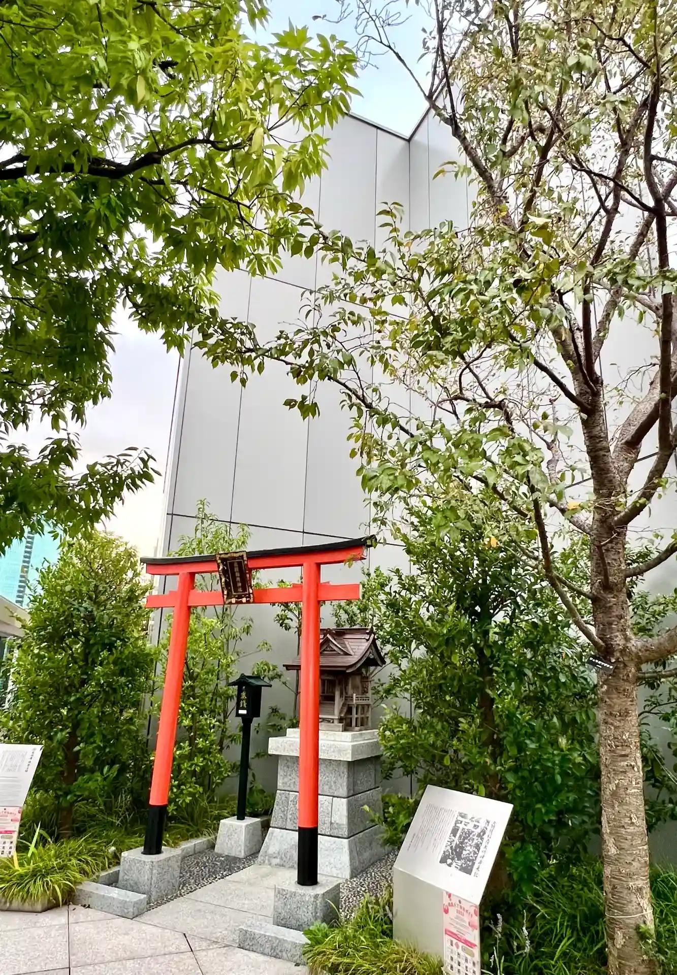 京都の伏見稲荷より勧請され、以前は松坂屋銀座店の屋上に。松坂屋の閉店後、跡地に建てられたGINZA SIXへと遷座したそうです。