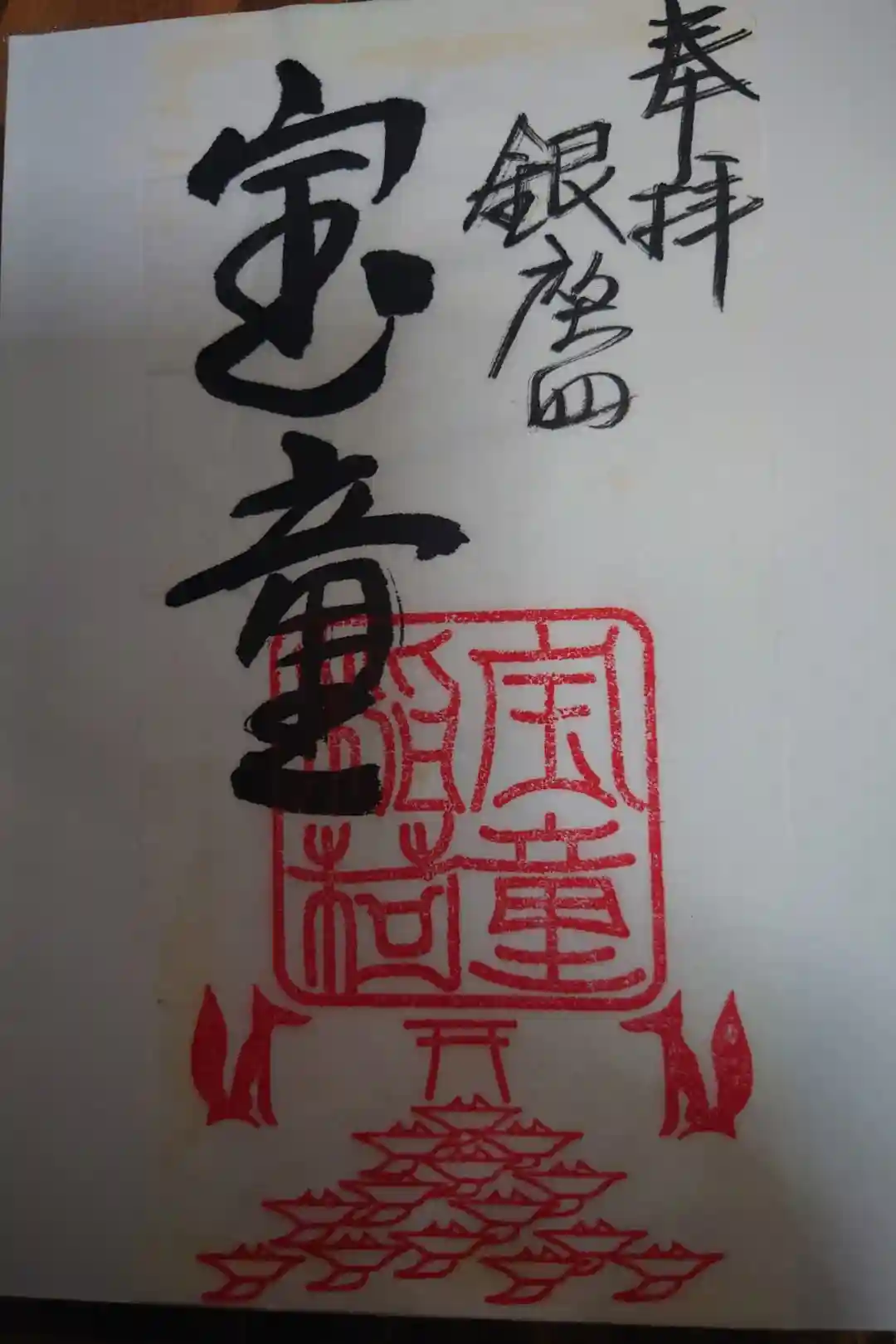 細長い書置きの御朱印