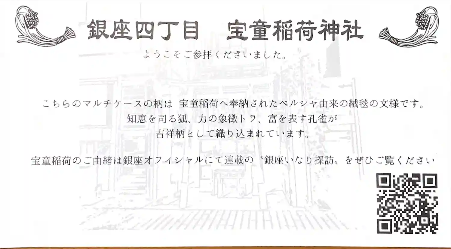 こちらのマルチケースの柄は、本年宝童稲荷に奉納されたペルシャ由来の絨毯の文様です