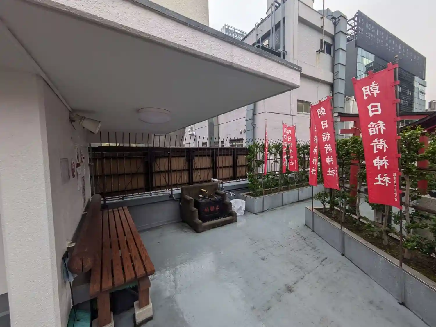 エレベーターで8Fまで上がり、非常階段で屋上まで上がると本殿があります。