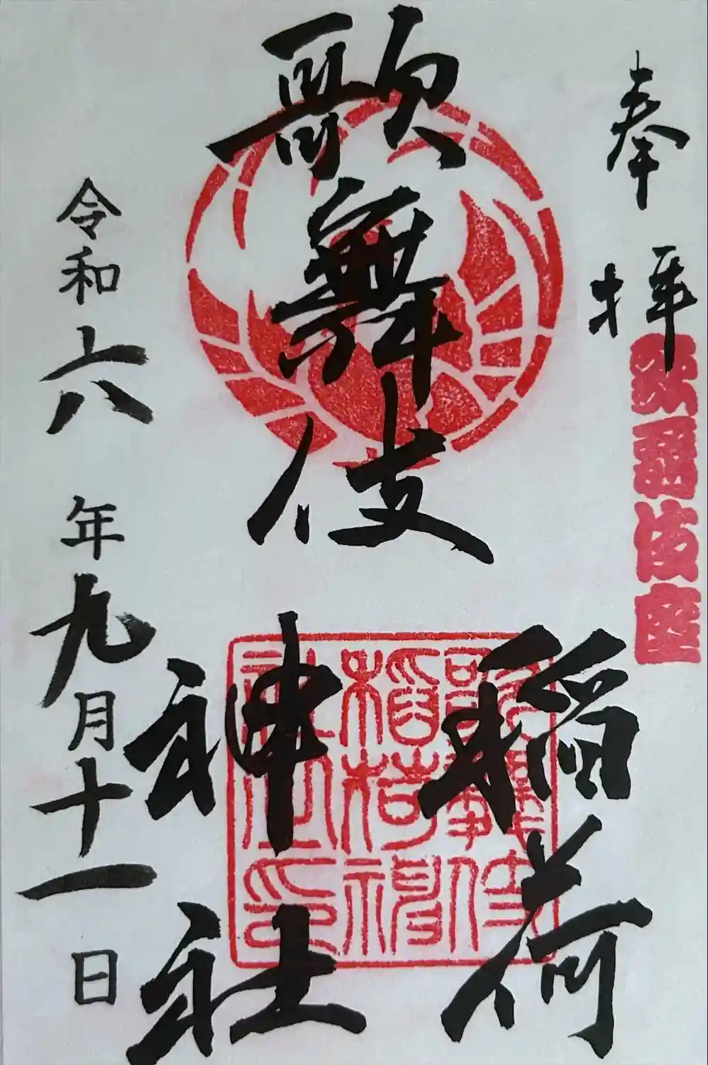 歌舞伎稲荷神社の御朱印 写真一覧