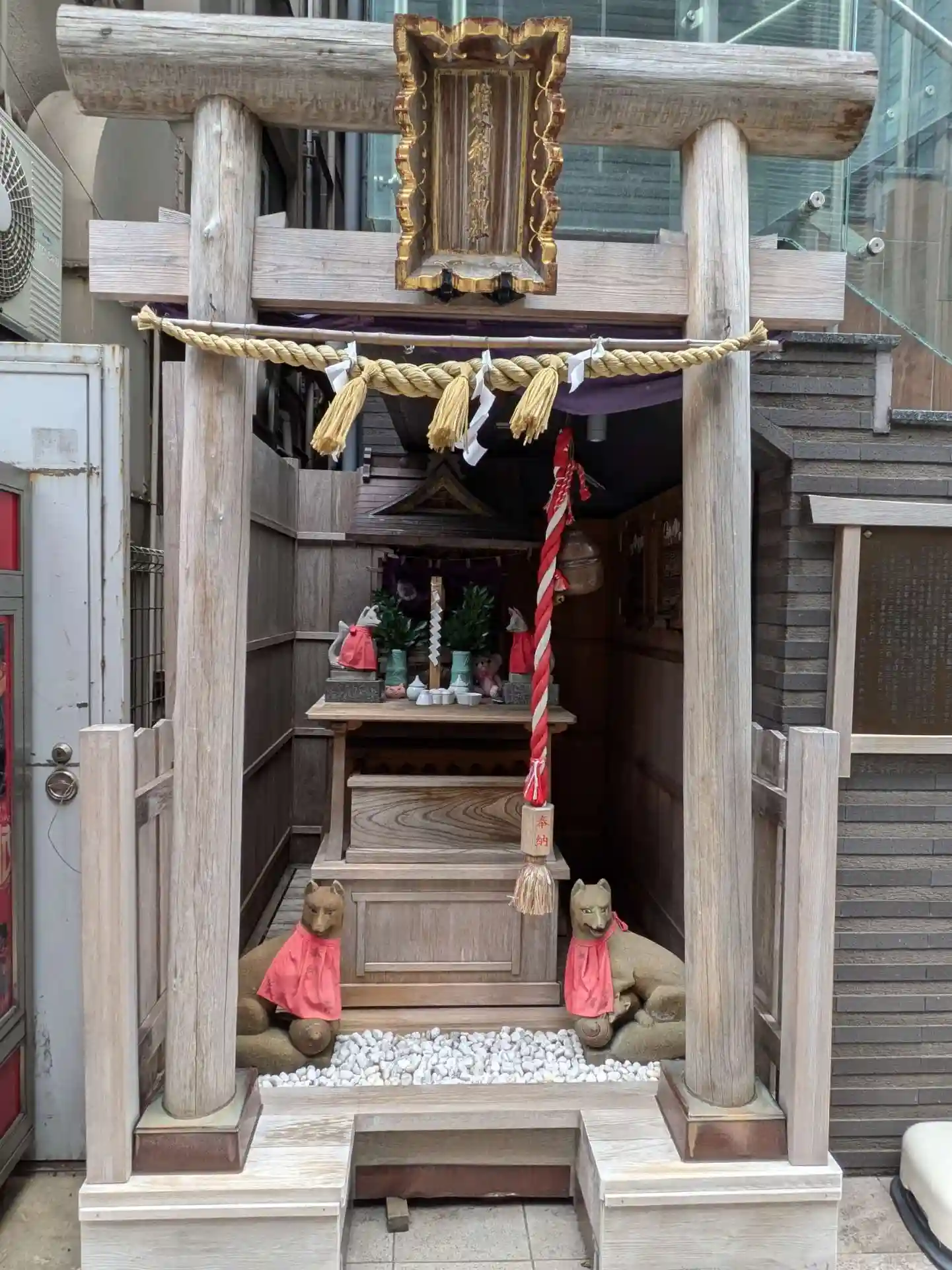 瀟洒なビルの1階に鎮座する綺麗な神社でした。鳥居の中に一歩踏み込める余裕がナイスです。